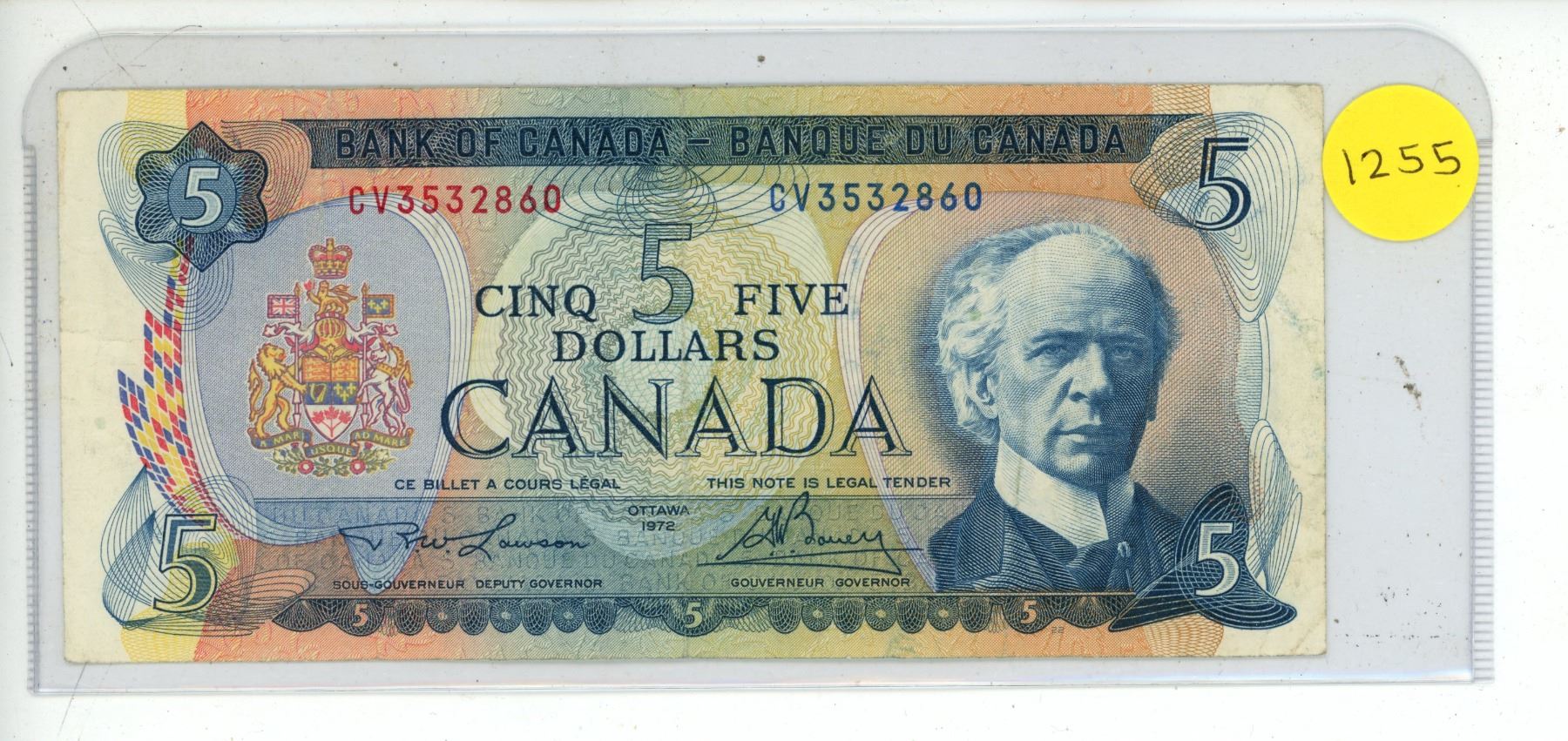 Lot 1255 1972 Bank Of Canada Five Dollar Bank Note