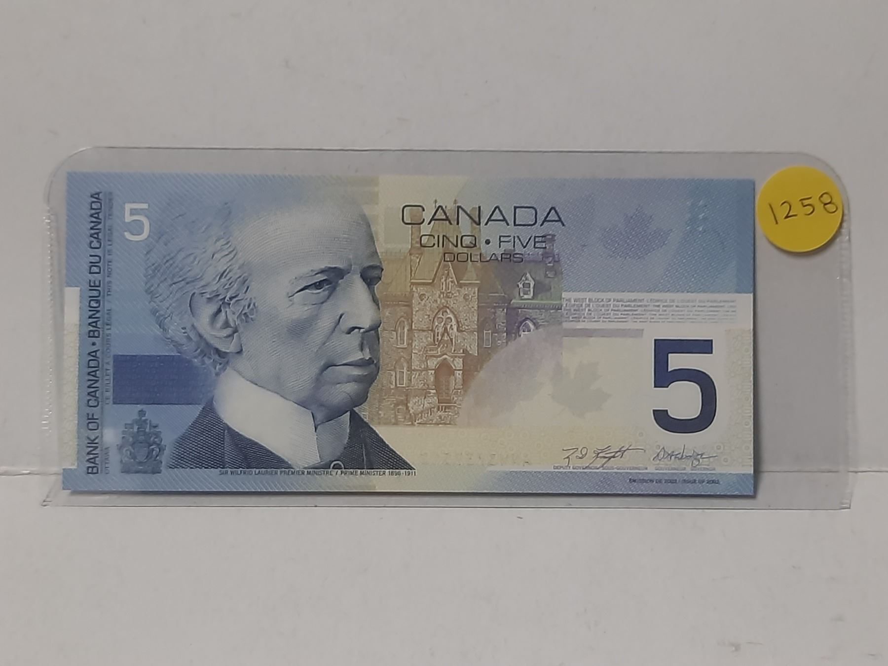 Lot 1258 2002 UNC Bank Of Canada Five Dollar Bank Note