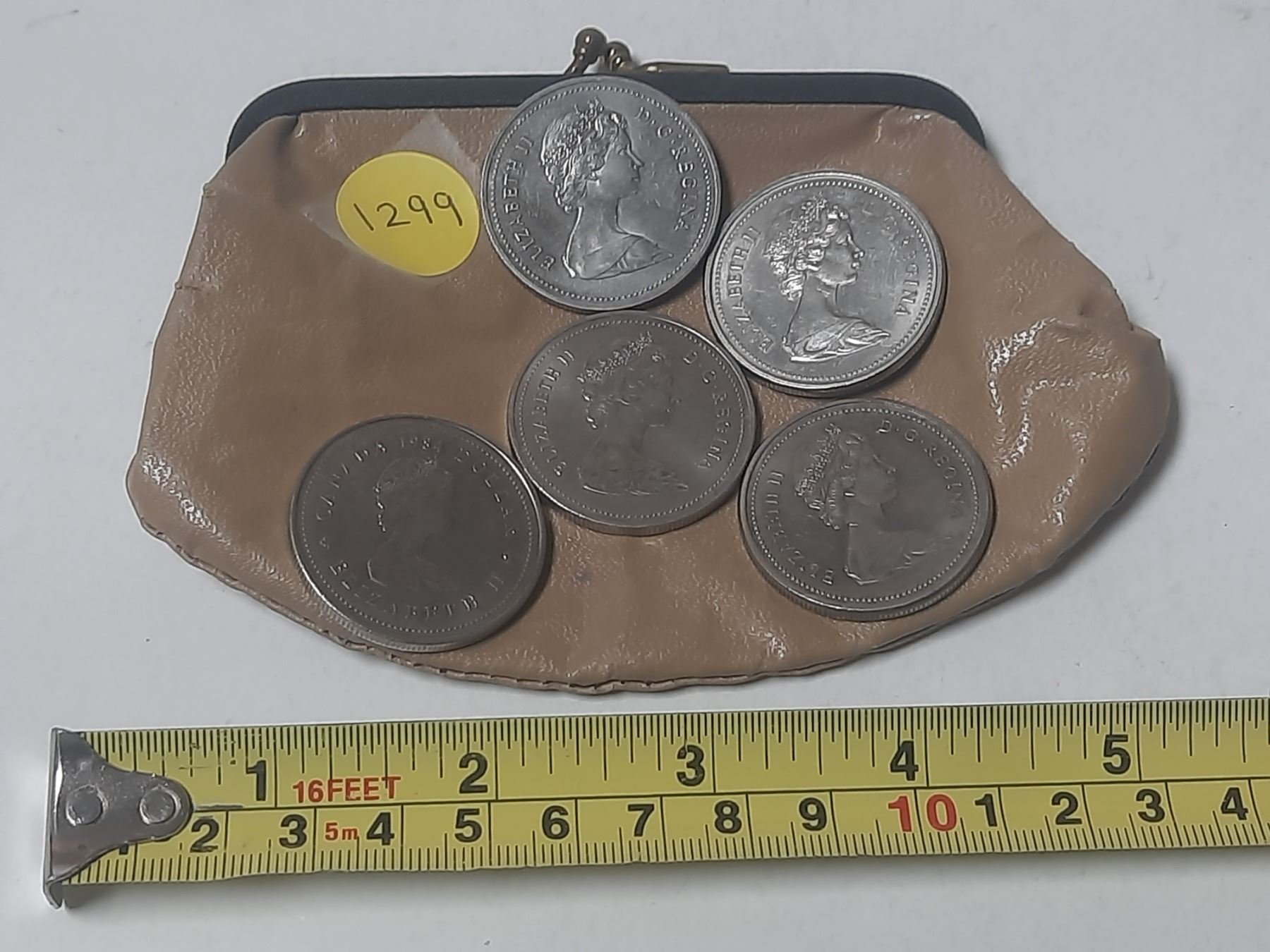 Lot 1299 Coin Purse With 5 Canadian Nickel Dollars