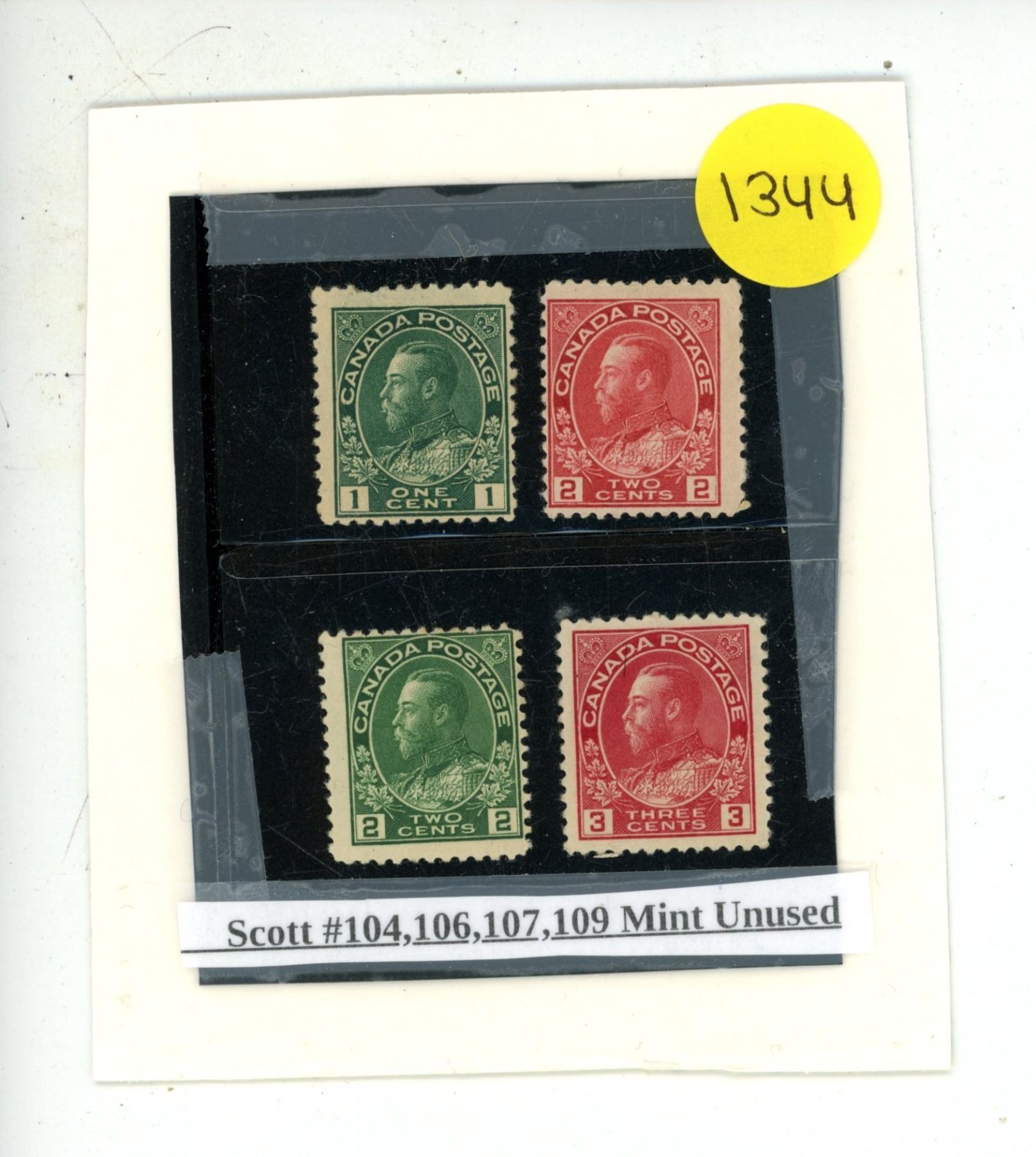 Lot 1344 Scott #104, 106, 107, 109 Mint Unused.