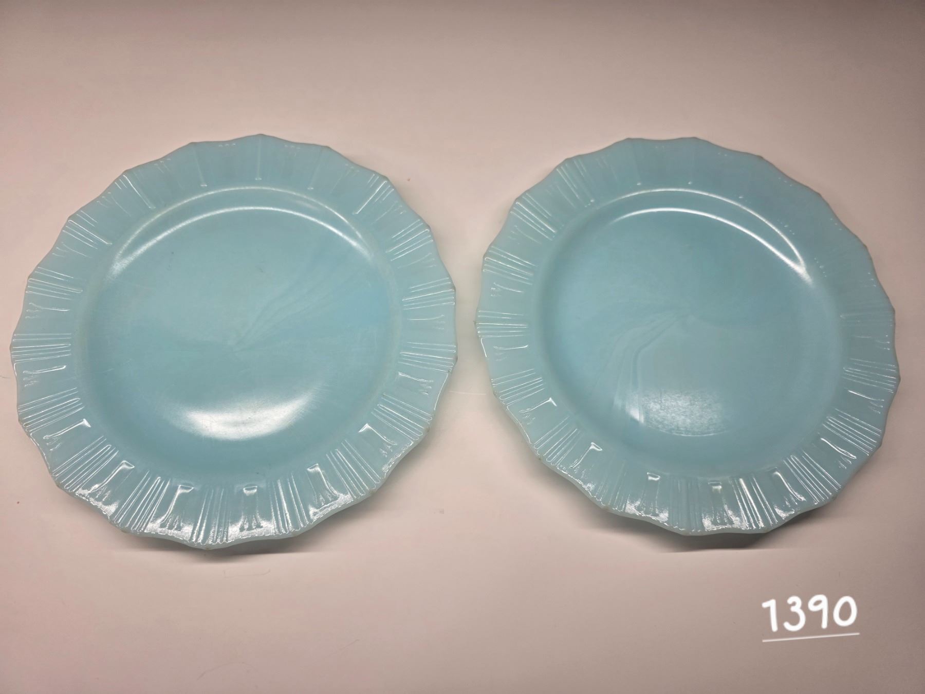 Lot 1390 Vintage rare pyrex turquoise dinner plates