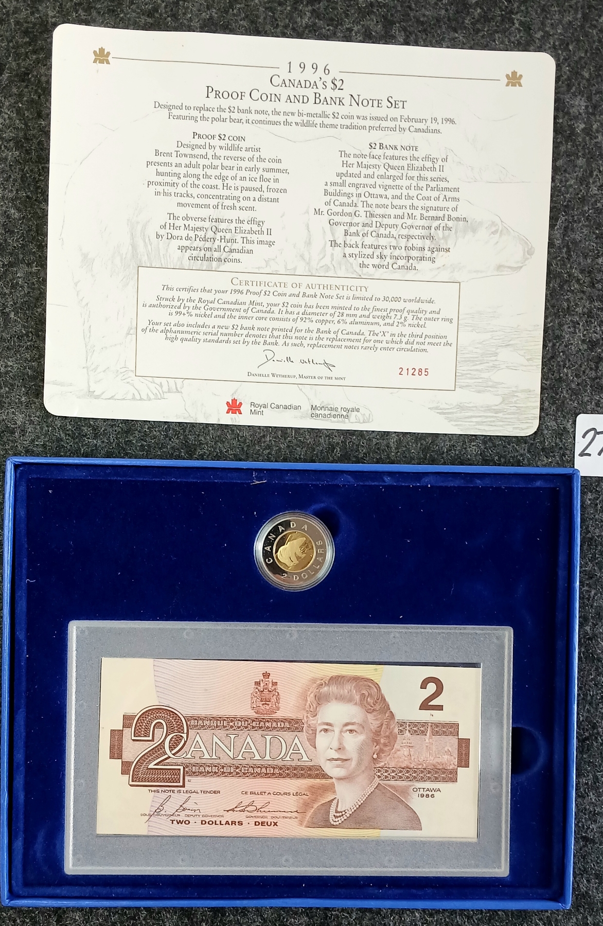 Lot 274 1966 CDN $2 PROOF COIN & BANKNOTE SET