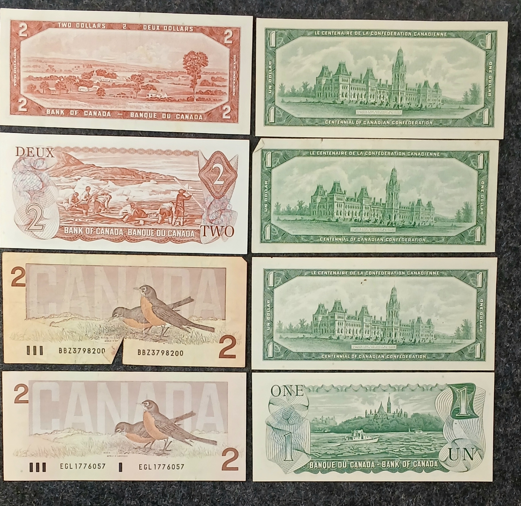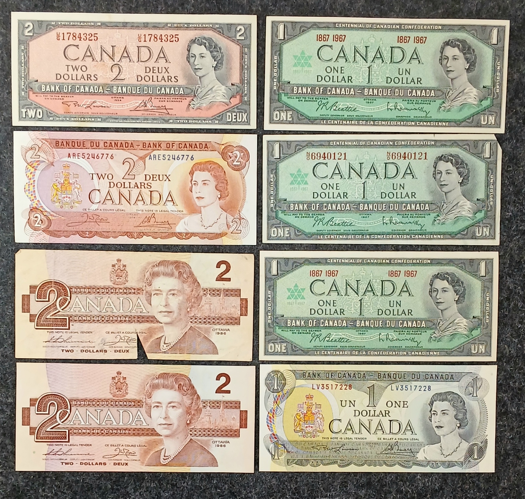 Lot 276 LOT OF 8 - 1954-1986 CDN $1 & $2 BANKNOTES