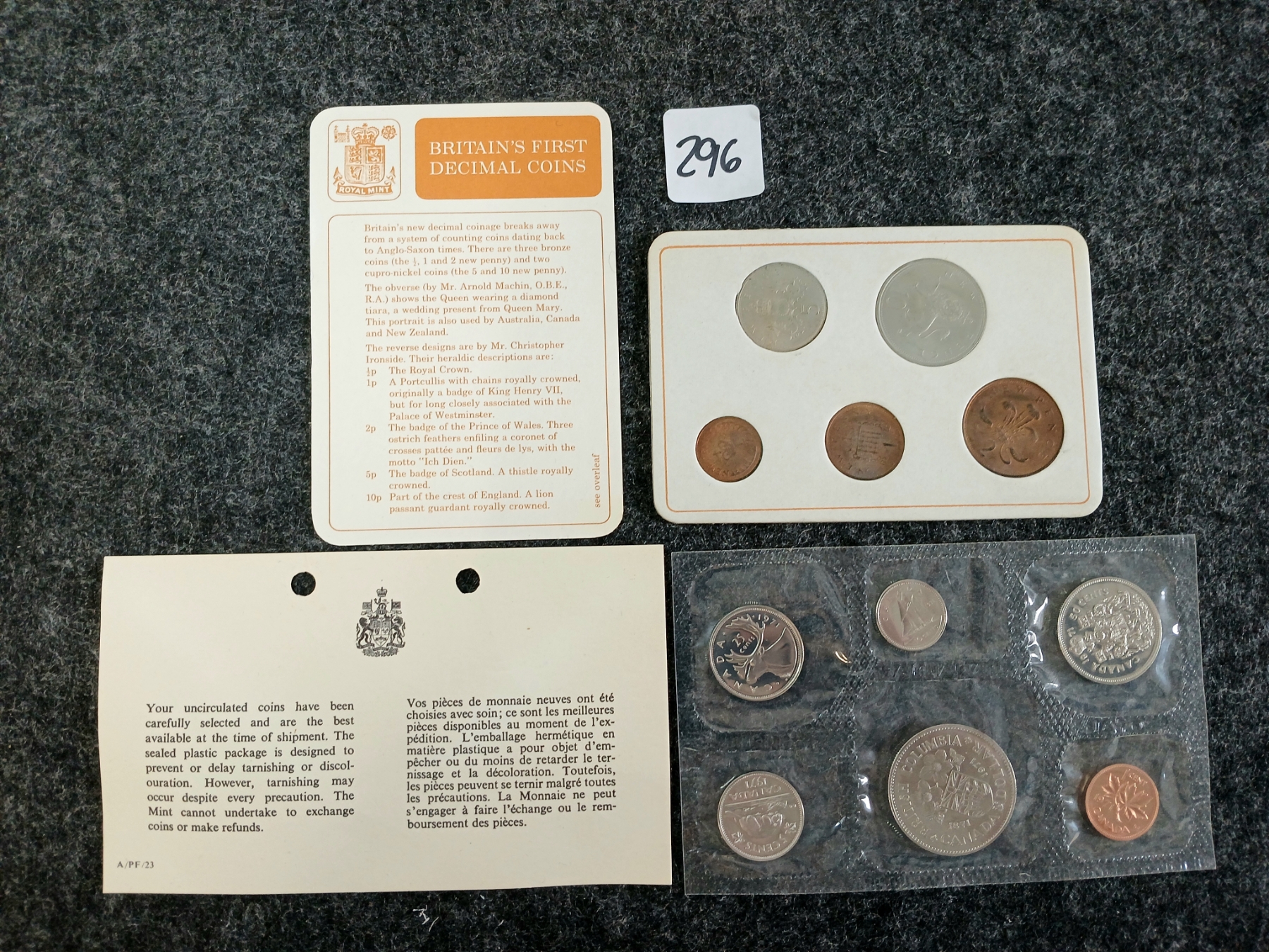 Lot 296 LOT OF 2 - 1971 RCM PROOF SET & BRITAIN'S 1ST DECIMAL COINS SET