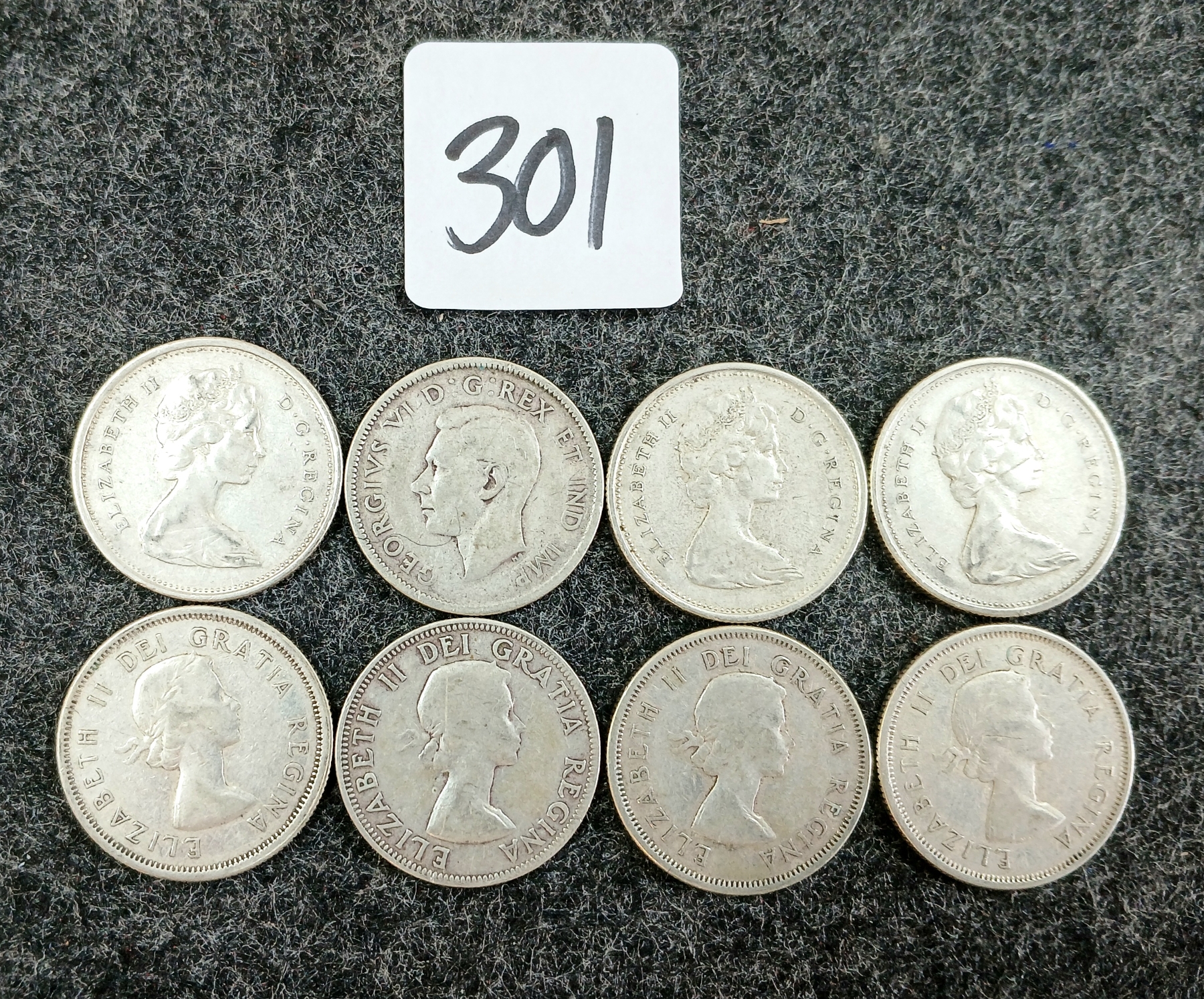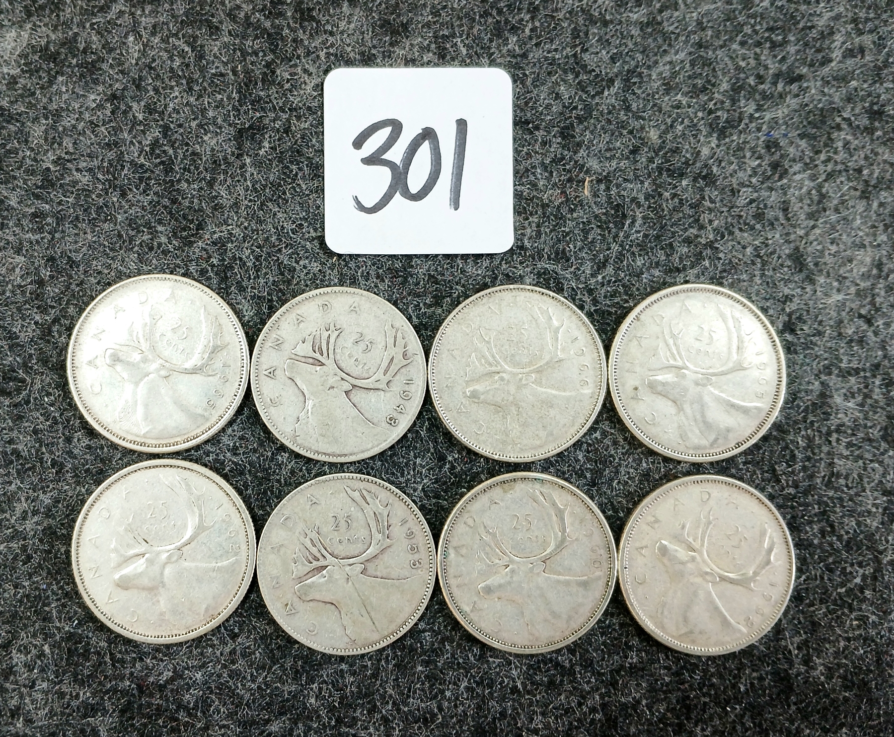Lot 301 LOT OF 8 - 1943-1966 CDN 25 CENT COINS
