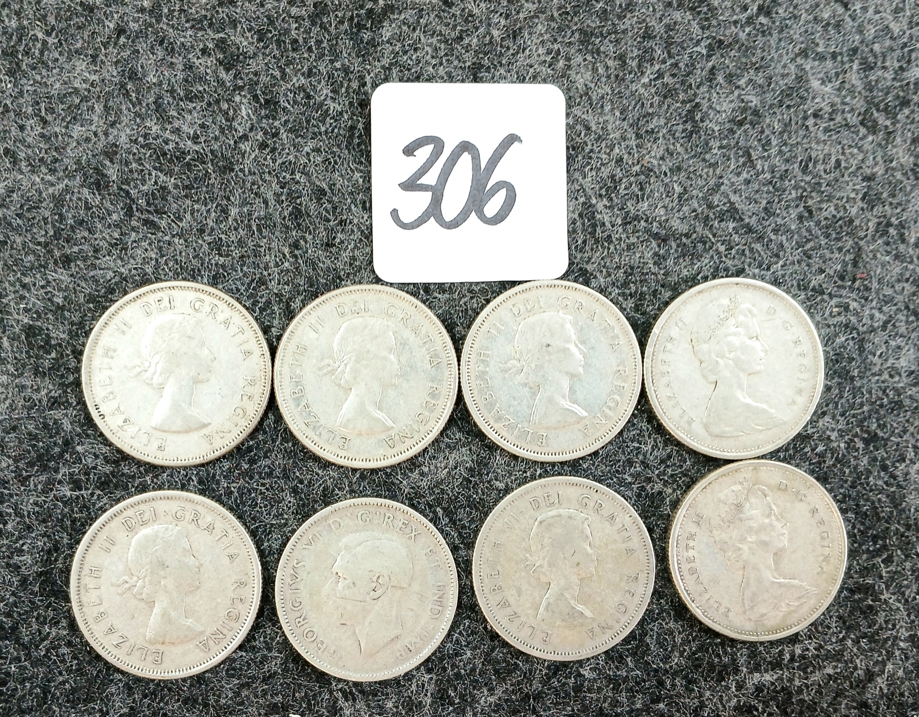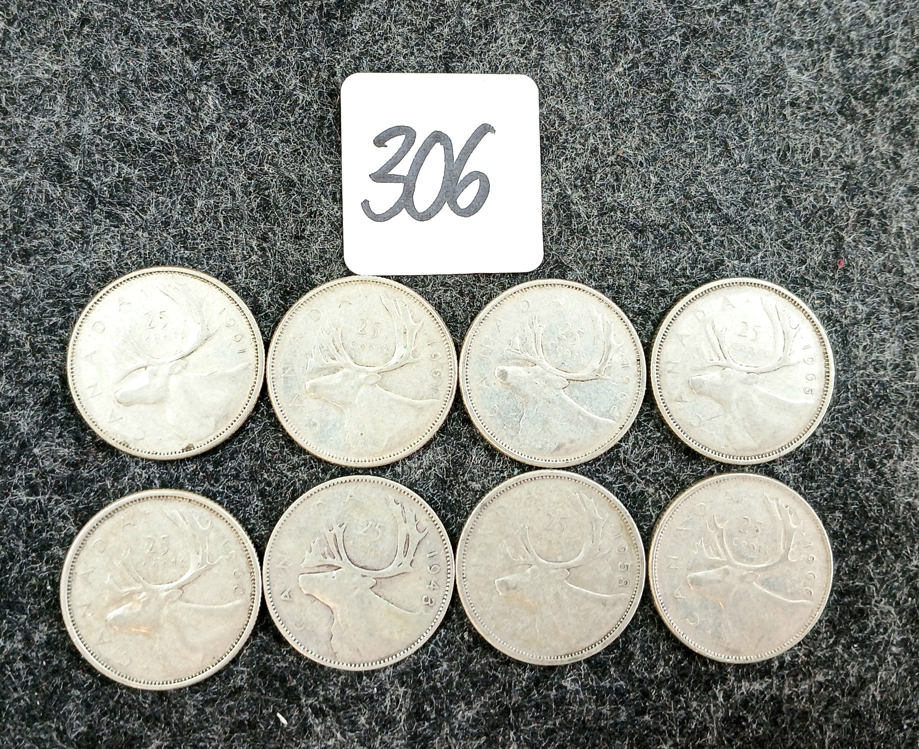 Lot 306 LOT OF 8 - 1943-1966 CDN 25 CENT COINS