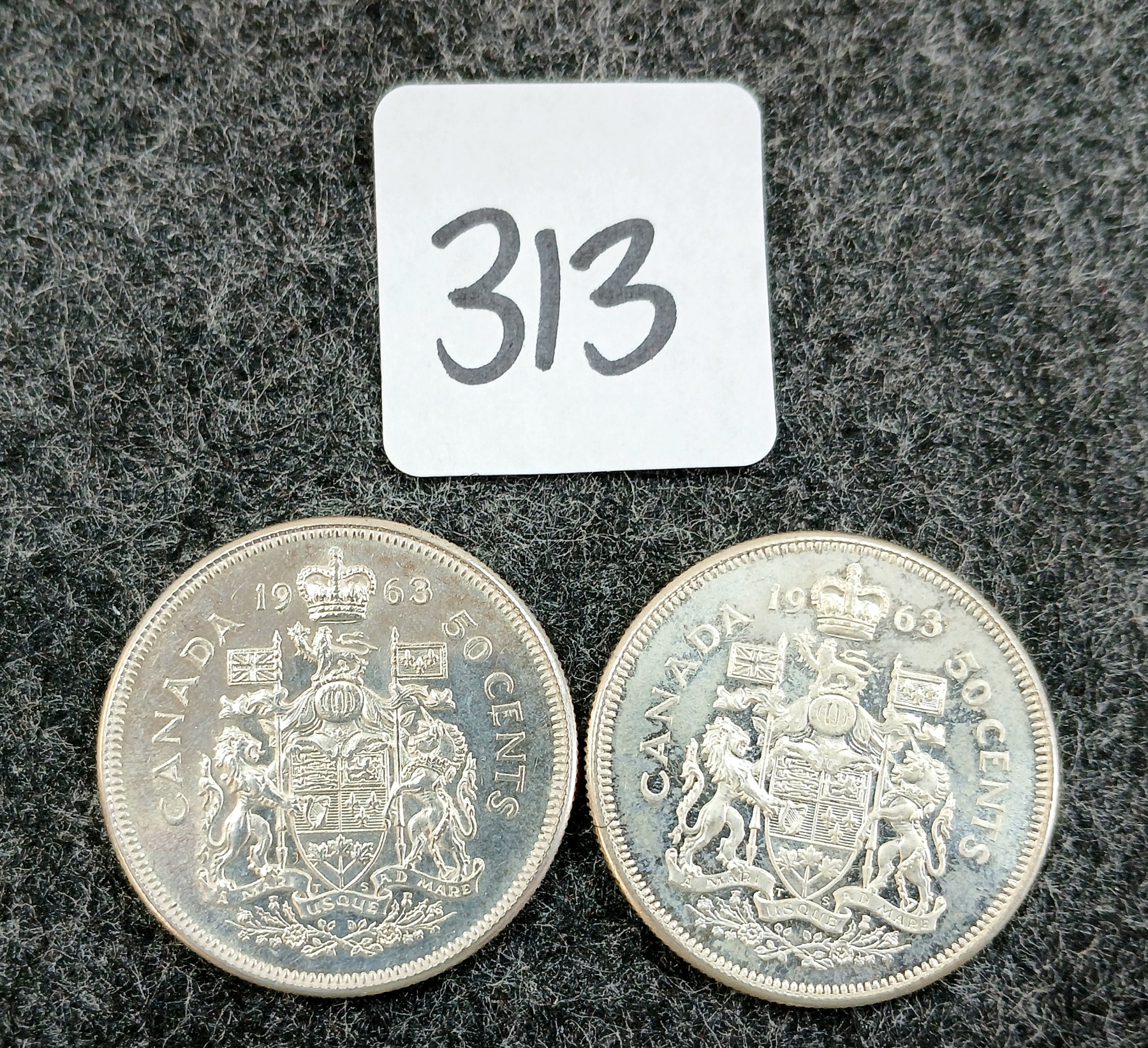 Lot 313 LOT OF 2 - 1963 CDN 50 CENT COINS