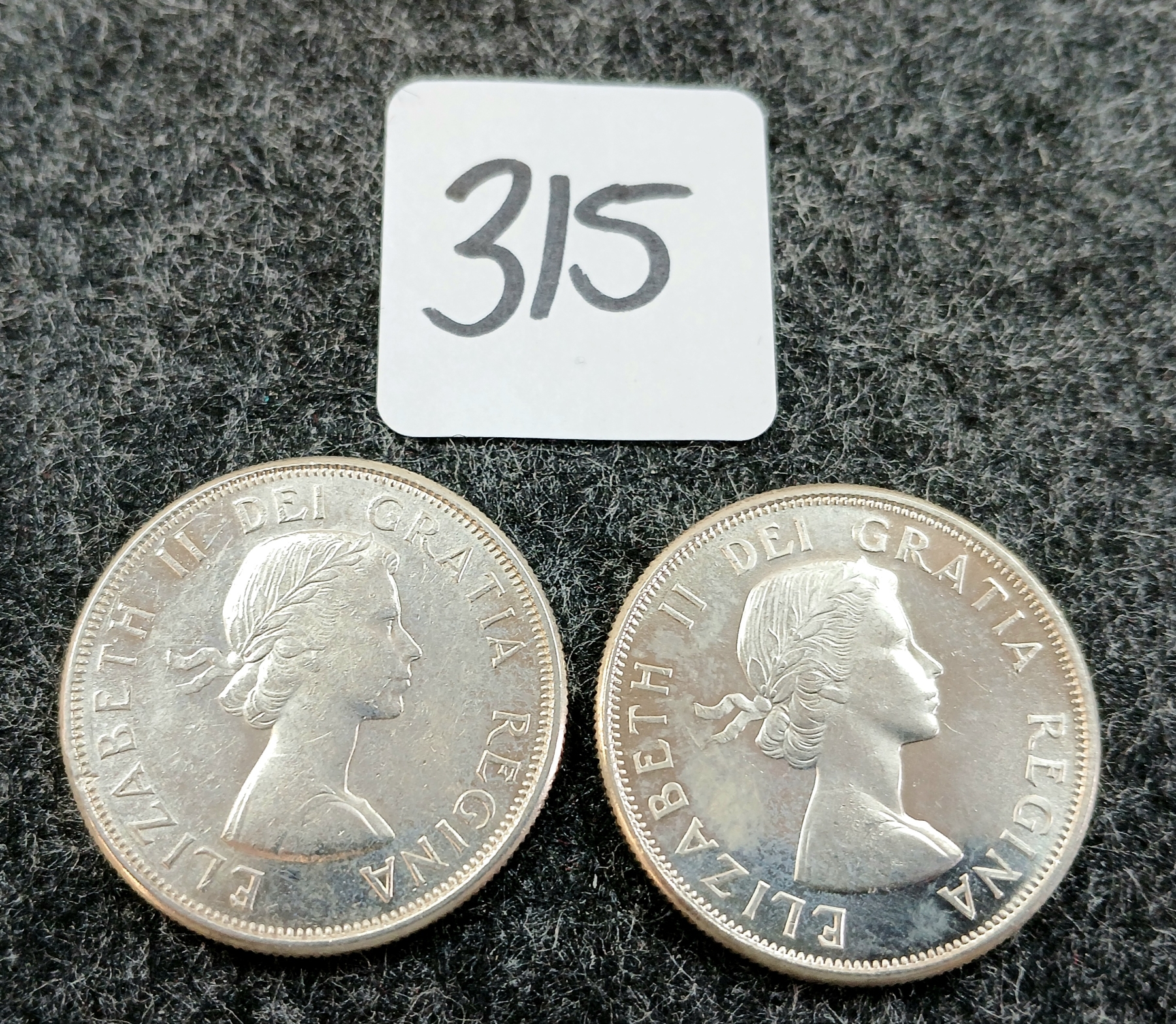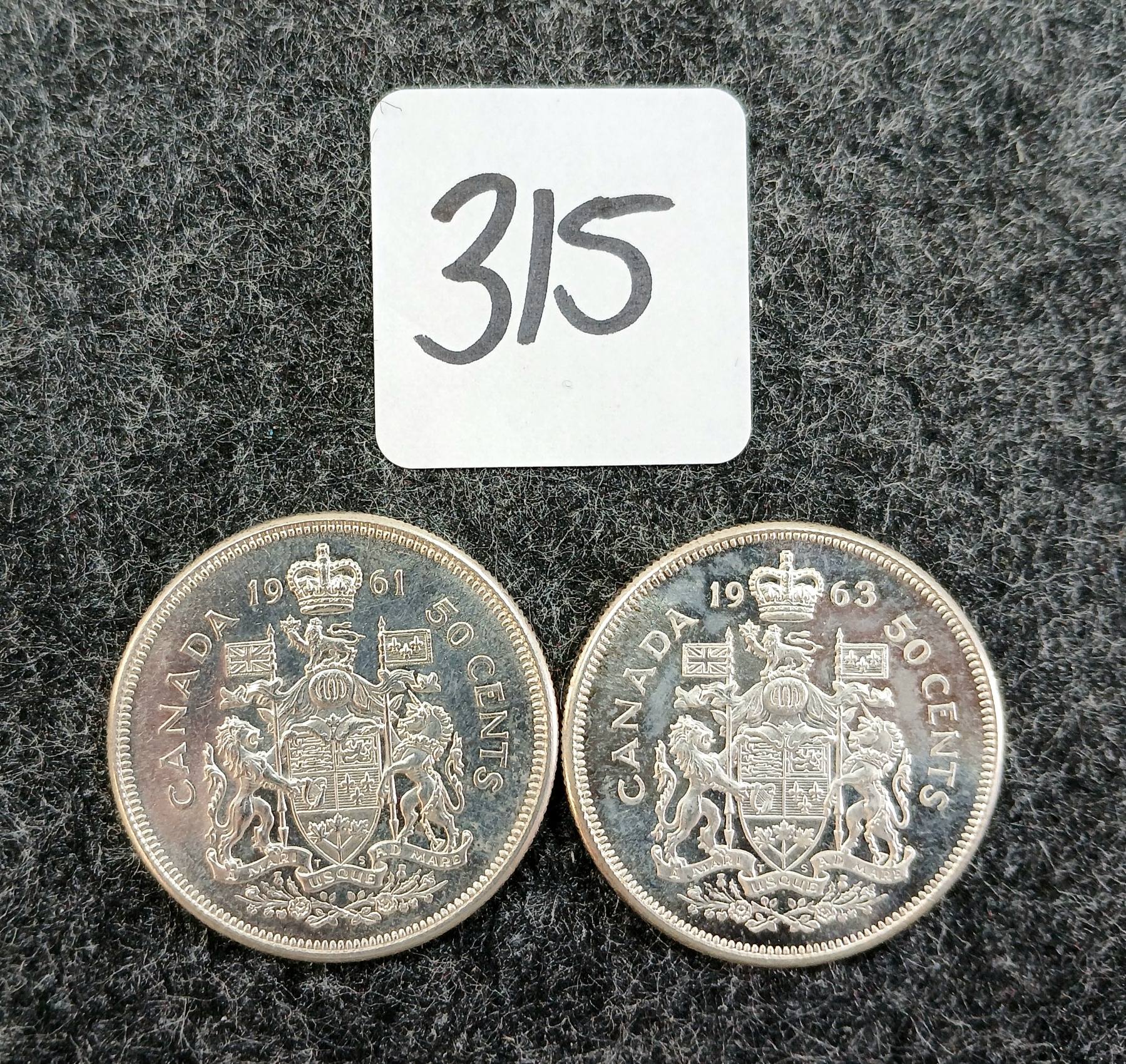 Lot 315 LOT OF 2 - 1961 & 1963 CDN 50 CENT COINS
