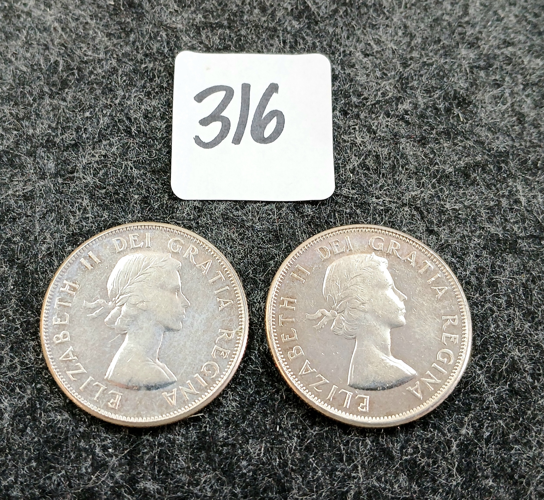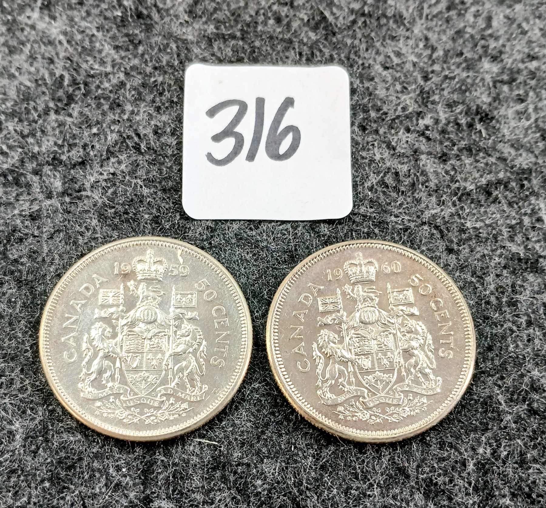 Lot 316 LOT OF 2 - 1959 & 1960 CDN 50 CENT COINS