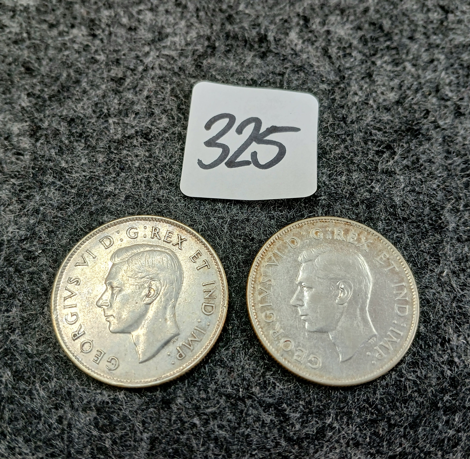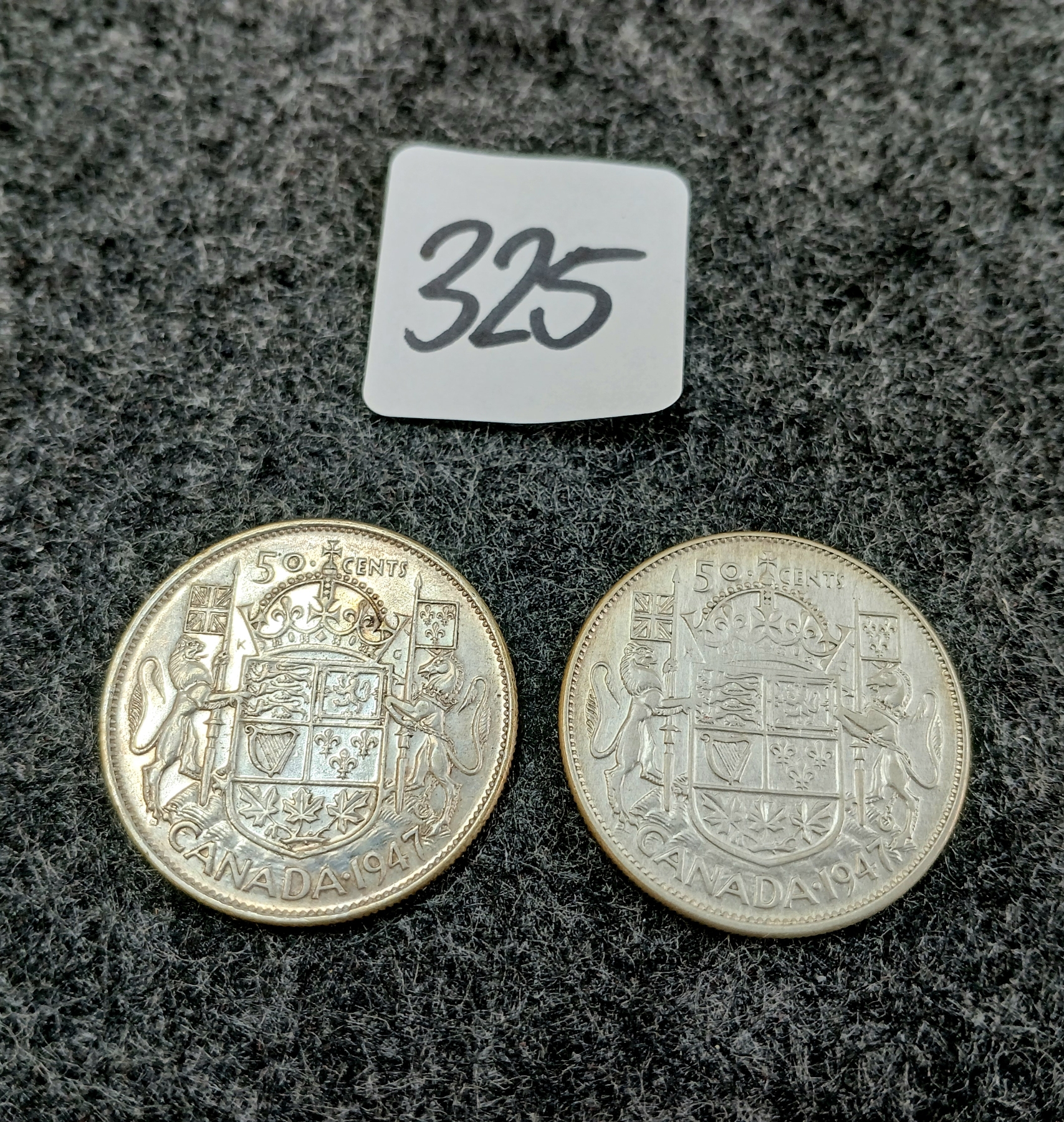 Lot 325 LOT OF 2 - 1947 CDN 50 CENT COINS