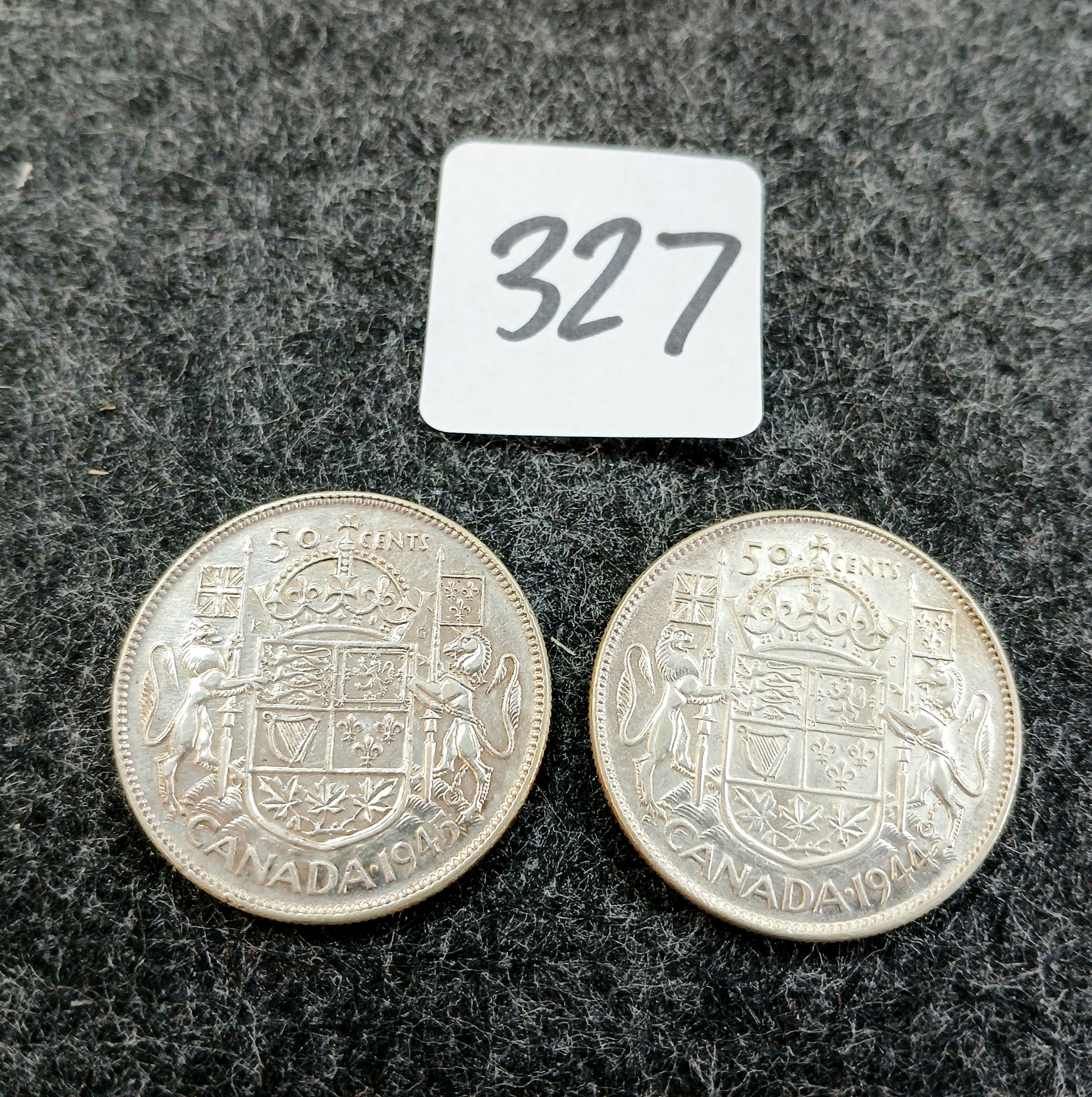Lot 327 LOT OF 2 - 1944 & 1945 CDN 50 CENT COINS
