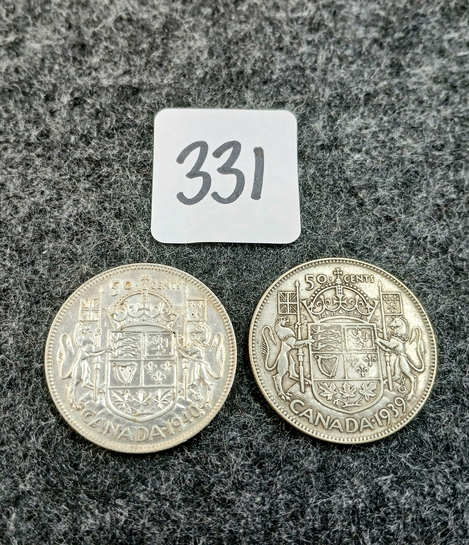 Lot 331 LOT OF 2 - 1939 & 1940 CDN 50 CENT COINS