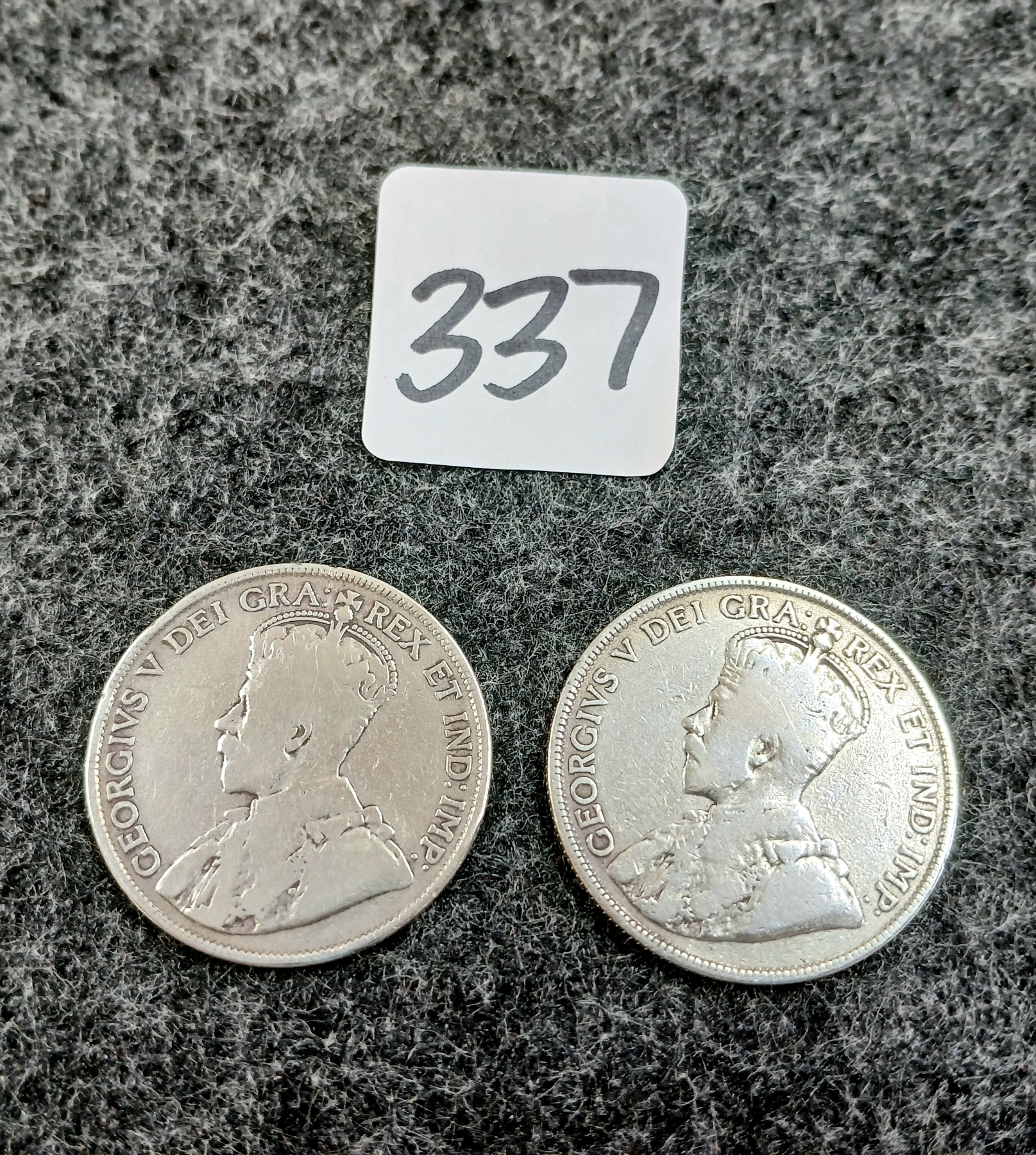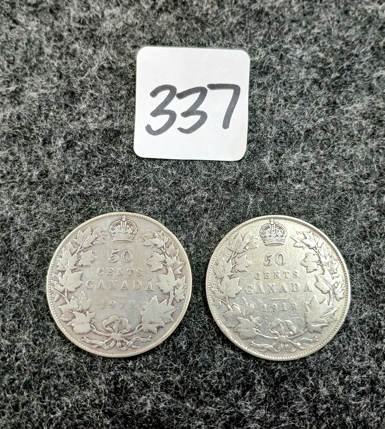 Lot 337 LOT OF 2 - 1919 CDN 50 CENT COINS