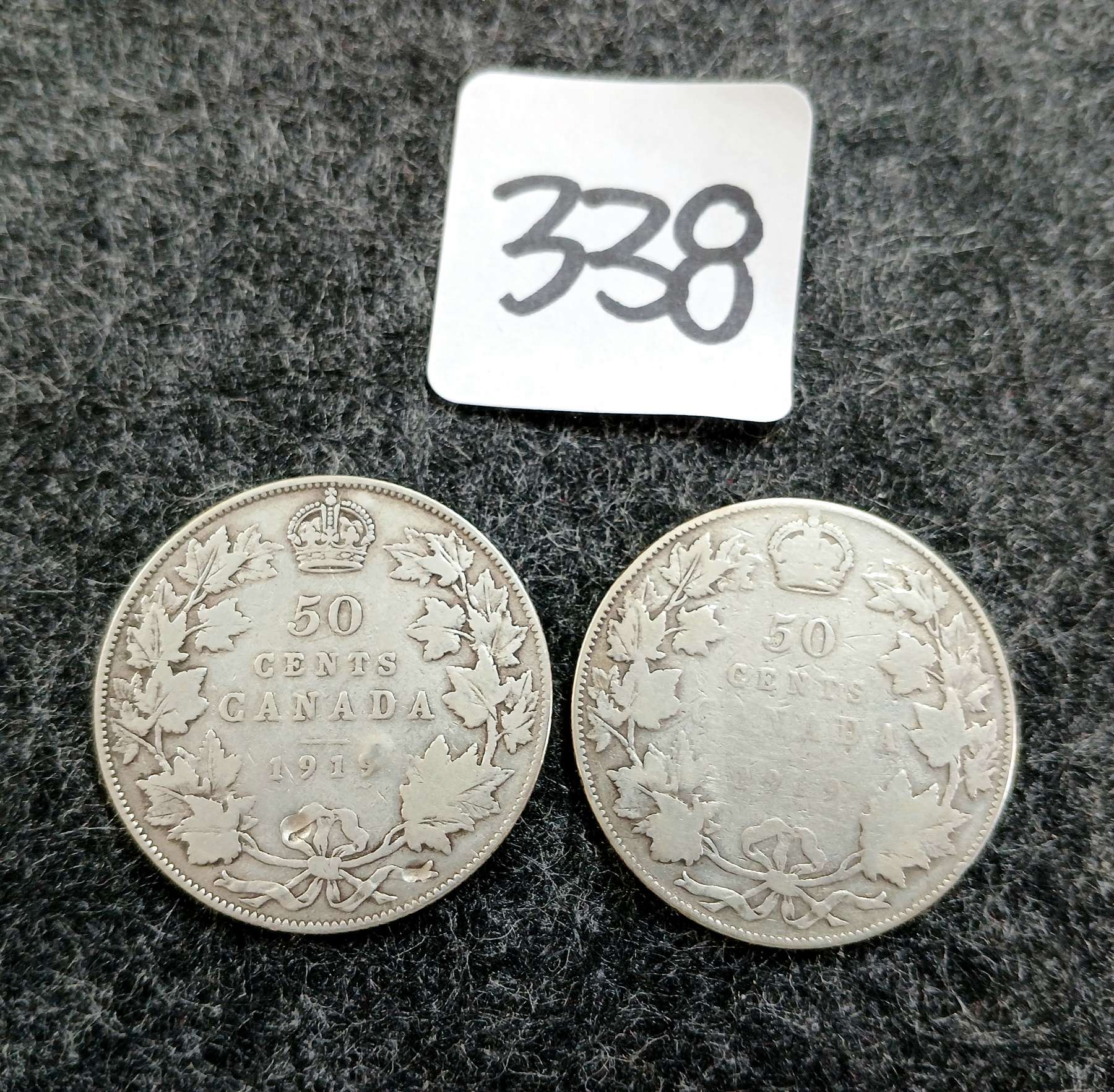 Lot 338 LOT OF 2 - 1919 CDN 50 CENT COINS