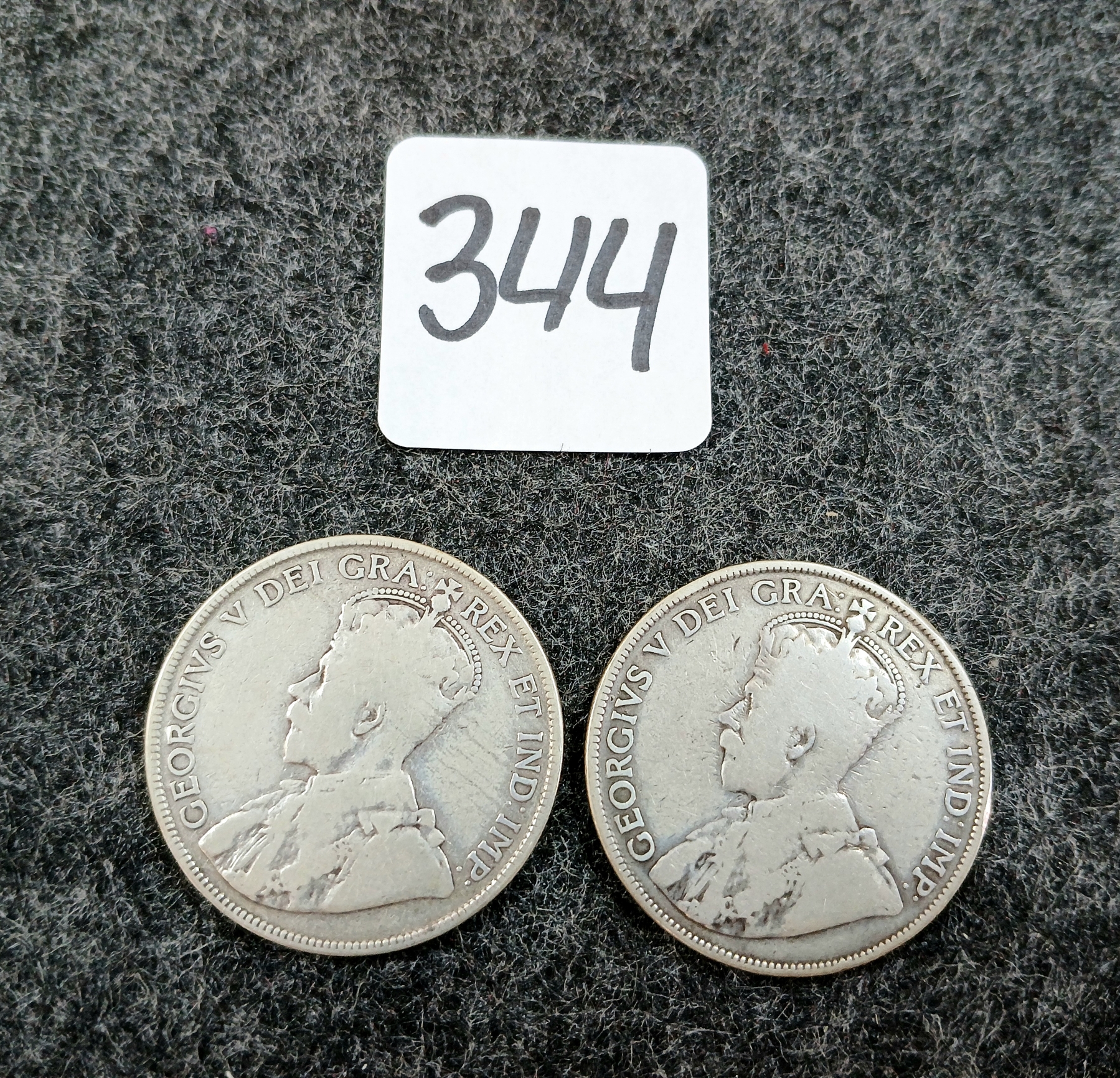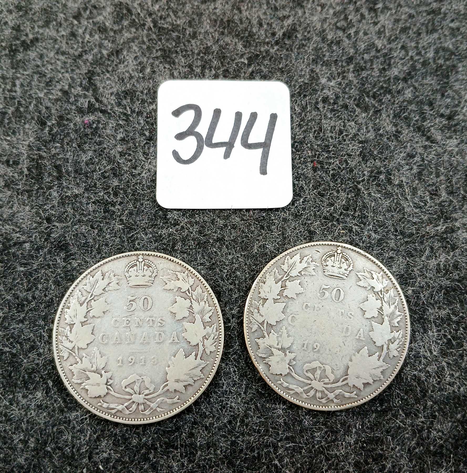 Lot 344 LOT OF 2 - 1913 & 1914 CDN 50 CENT COINS