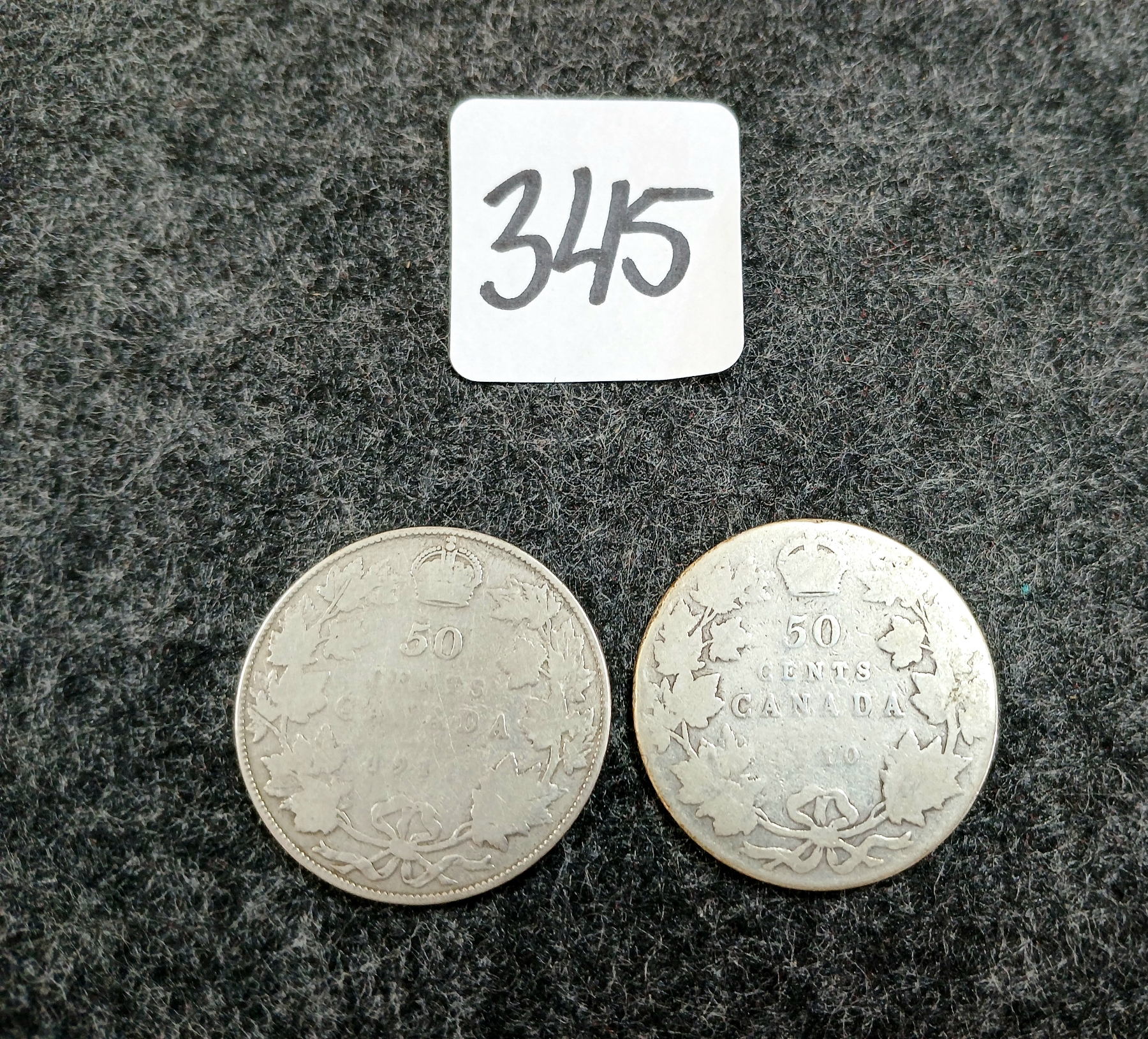 Lot 345 LOT OF 2 - 1910 & 1911 CDN 50 CENT COINS