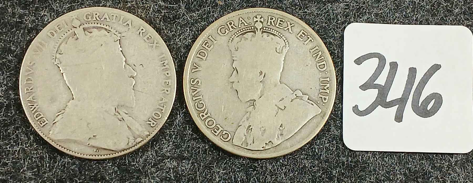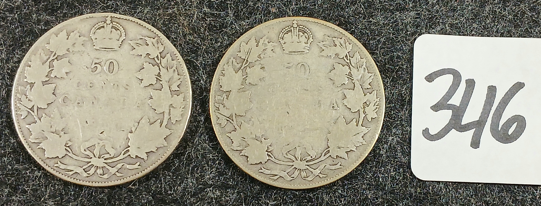 Lot 346 LOT OF 2 - 1910 CDN 50 CENT COINS