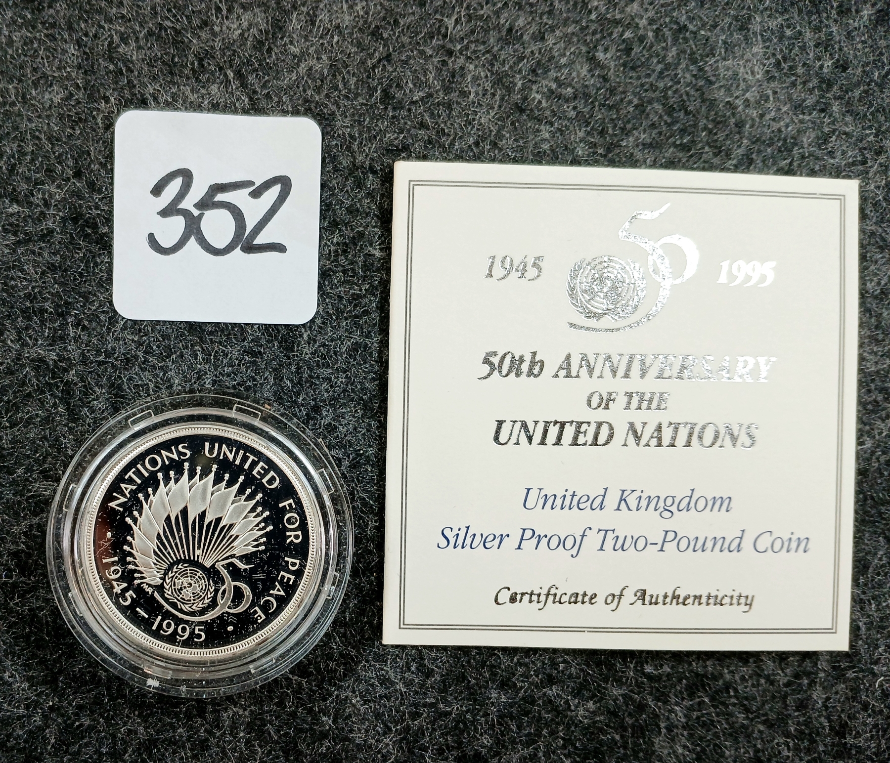 Lot 352 1995 U.K. SILVER PROOF 2 POUND COIN - 50TH ANNIVERSARY OF THE U.N.