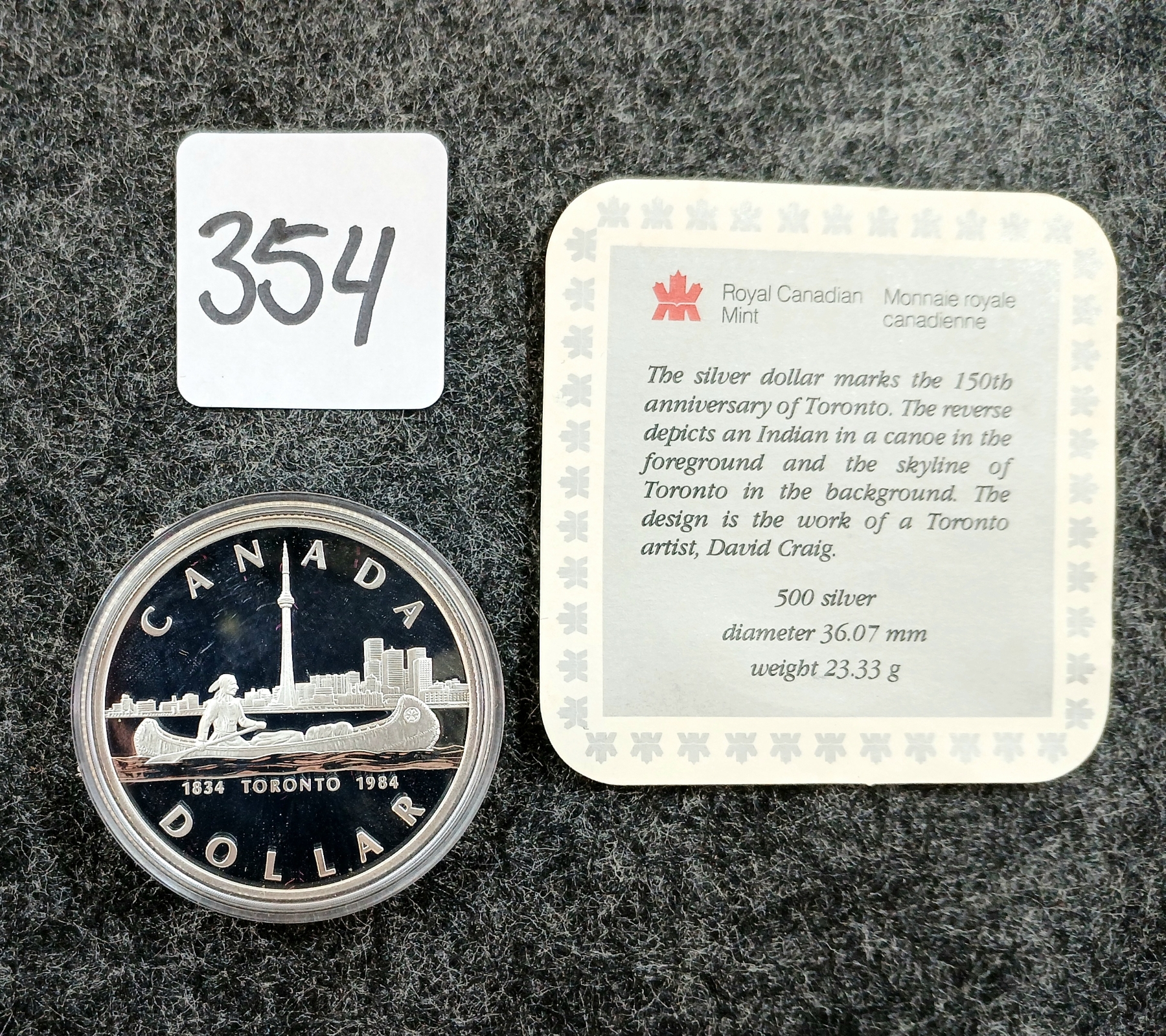 Lot 354 1984 RCM SILVER DOLLAR - 150TH ANNIVERSARY OF TORONTO