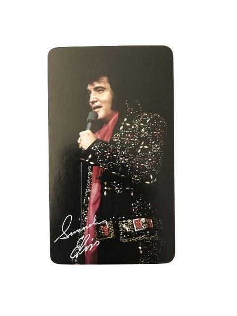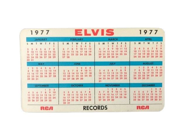 A Prototype Elvis Calendar Postcard 1977 Calendar (2"x4") in near mint condition, with a photo of Elivs on the front with a robo signature that reads: Sincerely Elvis. On the back is a calendar for the year 1977 from RCA Records.