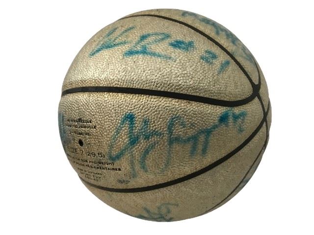 Ben Howland signed gold colored Nike basketball with several other unknown autographs (faded signatures). Benjamin Clark Howland (born May 28, 1957) is an American college basketball coach who most recently served as the men's head coach at Mississippi State University from to 2015 to 2022. He served as the head men's basketball coach at Northern Arizona University from 1994 to 1999, the University of Pittsburgh from 1999 to 2003, and the University of California, Los Angeles (UCLA) from 2003 to 2013. Howland became the first men's coach in modern college basketball history to be fired shortly after winning an outright power-conference title. He is one of the few NCAA Division I coaches to take four teams to the NCAA tournament.