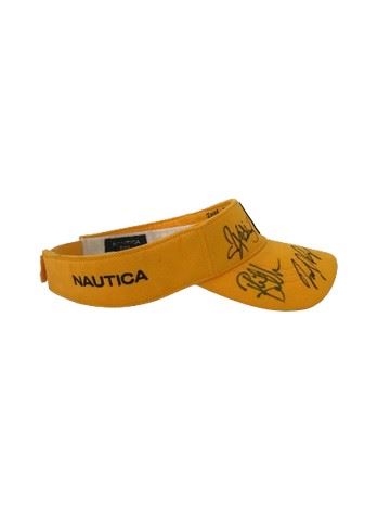 Association of Volleyball Professionals signed with 4 signatures on a yellow visor.