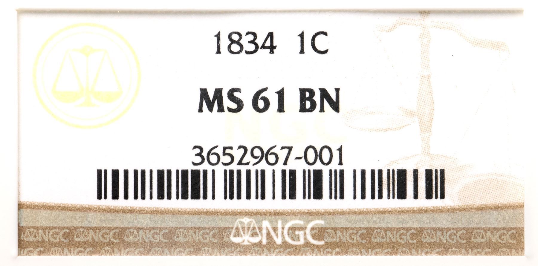 Lot 46 1834 N-5 R5 Large 8 & Stars, Medium Letters, NGC graded MS61 Brown