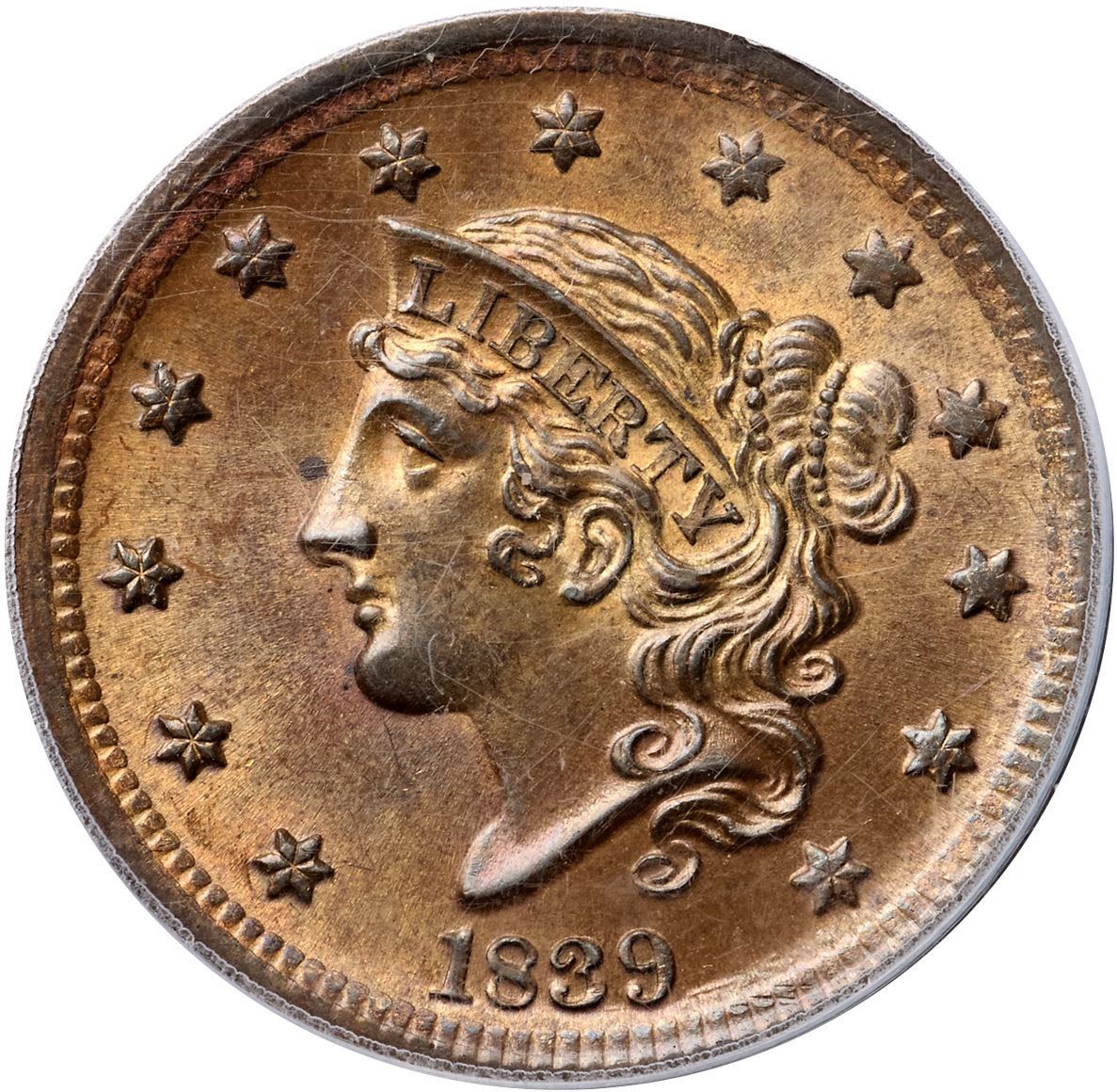 Lot 129 1839 N-4 R1 Silly Head, PCGS graded MS64 Brown