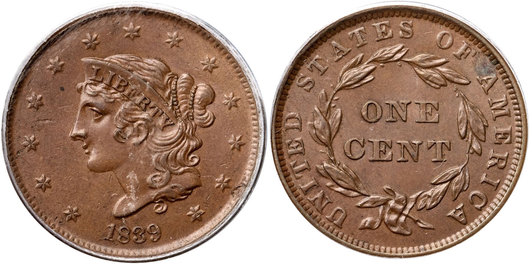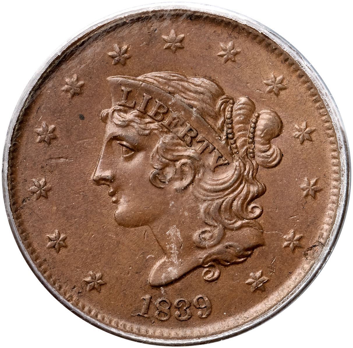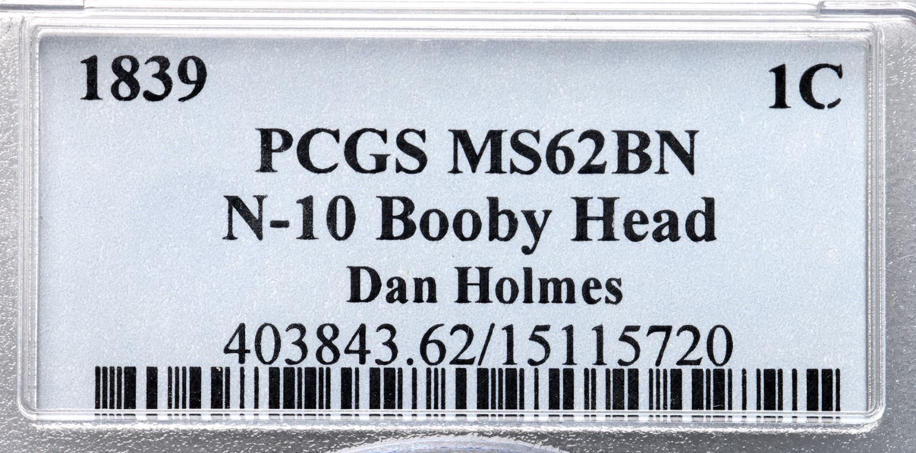 Lot 139 1839 N-10 R3 Booby Head, PCGS graded MS62 Brown