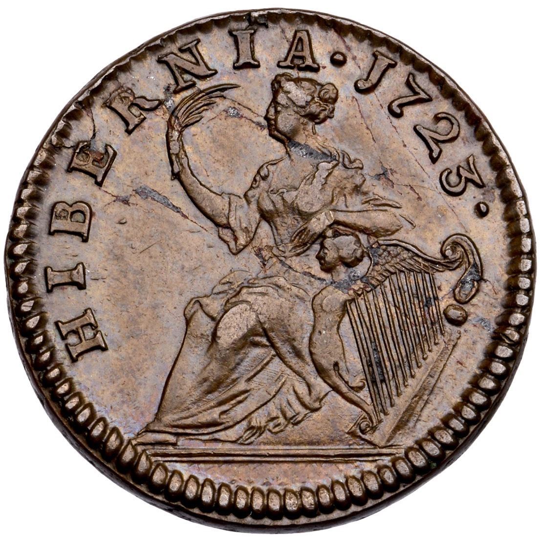Lot 148 1723 Martin 4.68-Gb.9 R-4 Wood's Hibernia Halfpenny MS62BN