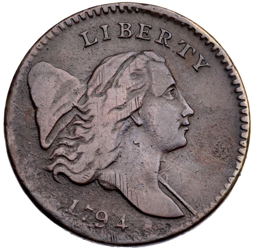 1794 C-3a R-5 F12VF sharpness but there are scattered spots of microporosity around the obverse peripheries and a couple notable scratches under NIT in UNITED. The only other notable marks are fine, vertical hairlines on Liberty's hair and shoulder. Glossy chocolate and steel brown surfaces. Manley Die state 1.0. 106.0 grains.Certificate Number: Pedigree: Ex Gene Braig 4/2003-Bill Eckberg (through Chris Victor-McCawley) - EAC 4/23/2010 - Bob Kebler Collection