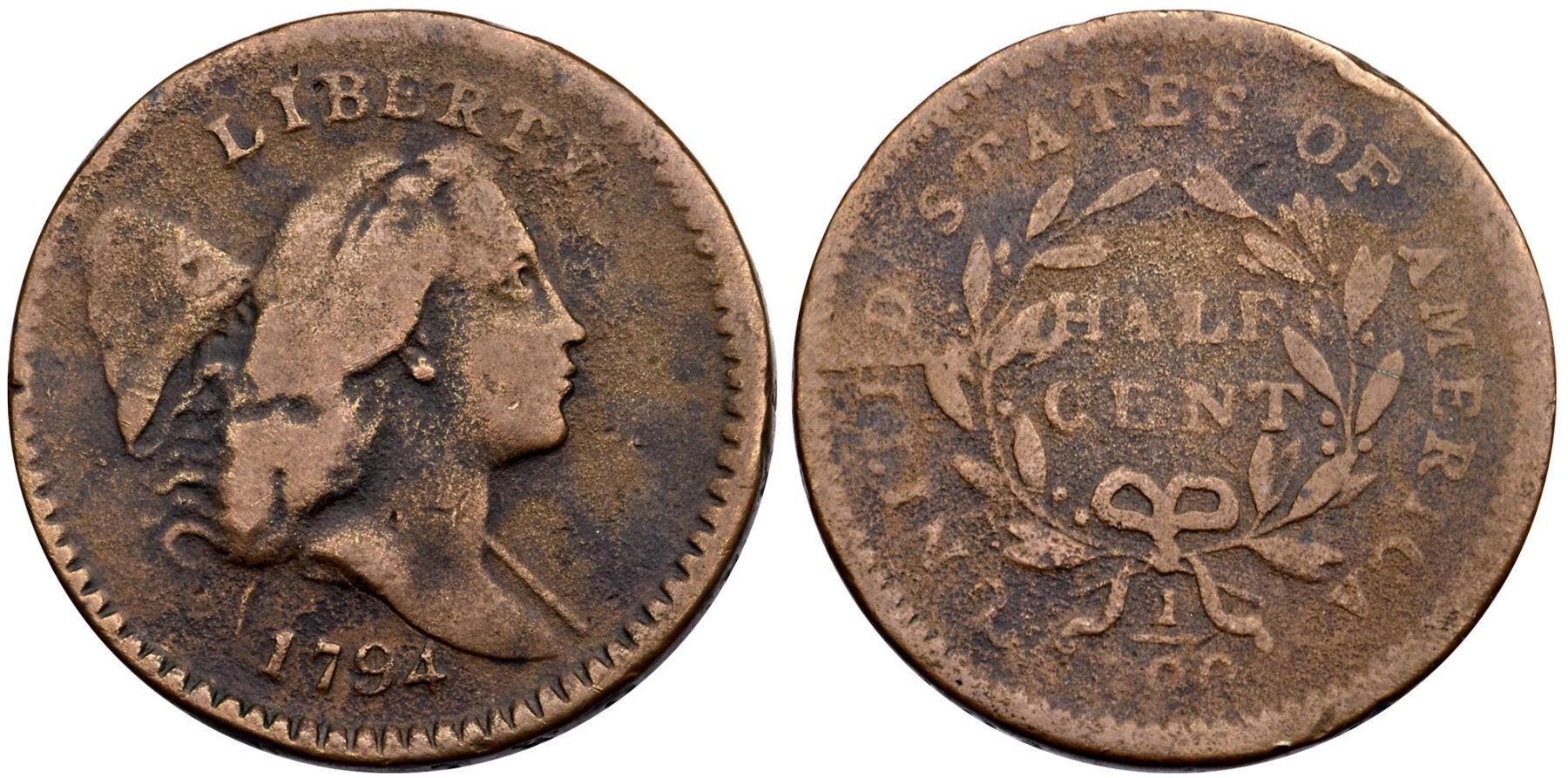 1794 C-7 R-5 G6A couple of points sharper with microscopic granularity in the fields, strongest on the reverse. A small rim bruise at O in OF is the only mark. Light to medium brown with darker olive toning in protected areas, the highpoints rather glossy. The date is bold and legends all readable. Manley State 2.0.Certificate Number: Pedigree: Ex; J.R. Frankenfield - Superior 2/17/2001:18 - Bob Kebler Collection
