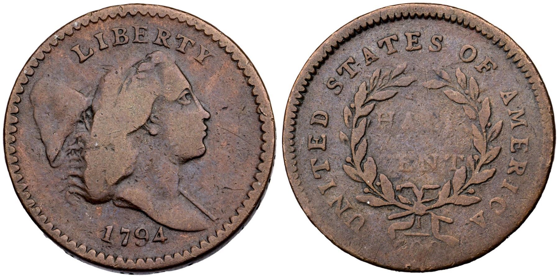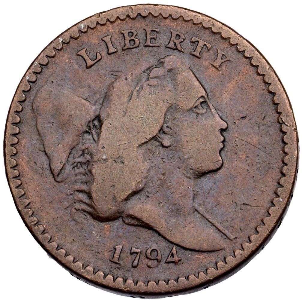 1794 C-8 R-5 VG10+Choice glossy medium brown and light chocolate. Smooth surfaces, just a few trivial contact marks from choice. A tiny nick in the middle of the neck and a faint diagonal hairline scratch in the field before the mouth are the notable marks, and they are barely visible. MDS, Manley state 2.0 early, with a fine die crack from the rim to the top of the second T in STATES. The reverse is struck slightly off center to K-5 leaving some weakness in the legends near the edge from K-4 to K-7 (as often seen on this tough die variety). Everything else is clear and complete. Broken out of a PCGS F12 holder with the Widok Collection provenance noted (#35060.12/37281450).Certificate Number: Pedigree: Ex; Richard Coleman-Mike Demling 5/2000-Mark Hays 5/1/2015-Rod Widok - Goldbergs 2/16/20:420