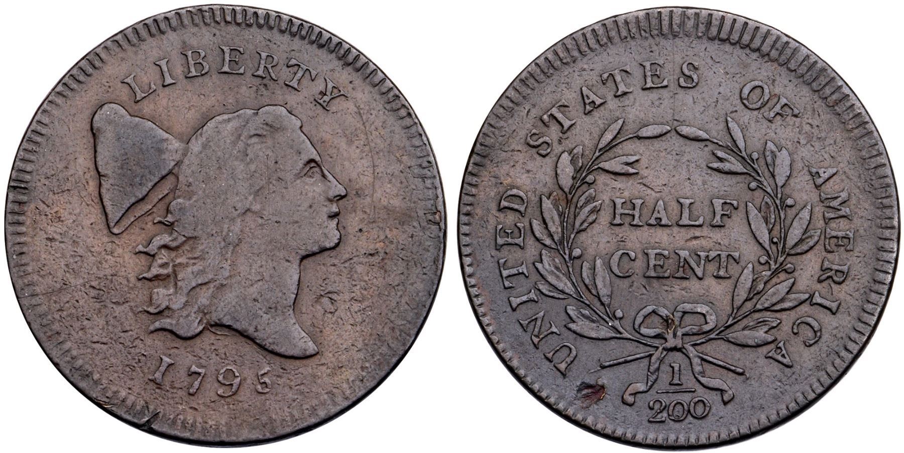 1795 C-6a R-2 VF205 points sharper but there is planchet chip on the bottom reverse. Trivial marks and abrasions in the field otherwise Semi-glossy chocolate and steel brown's with deeper steel on the high points and lower reverse. MDS, Manley state 2.0.Certificate Number: Pedigree: Ex; Doug Bird 5/3/2003 - Bob Kebler Collection