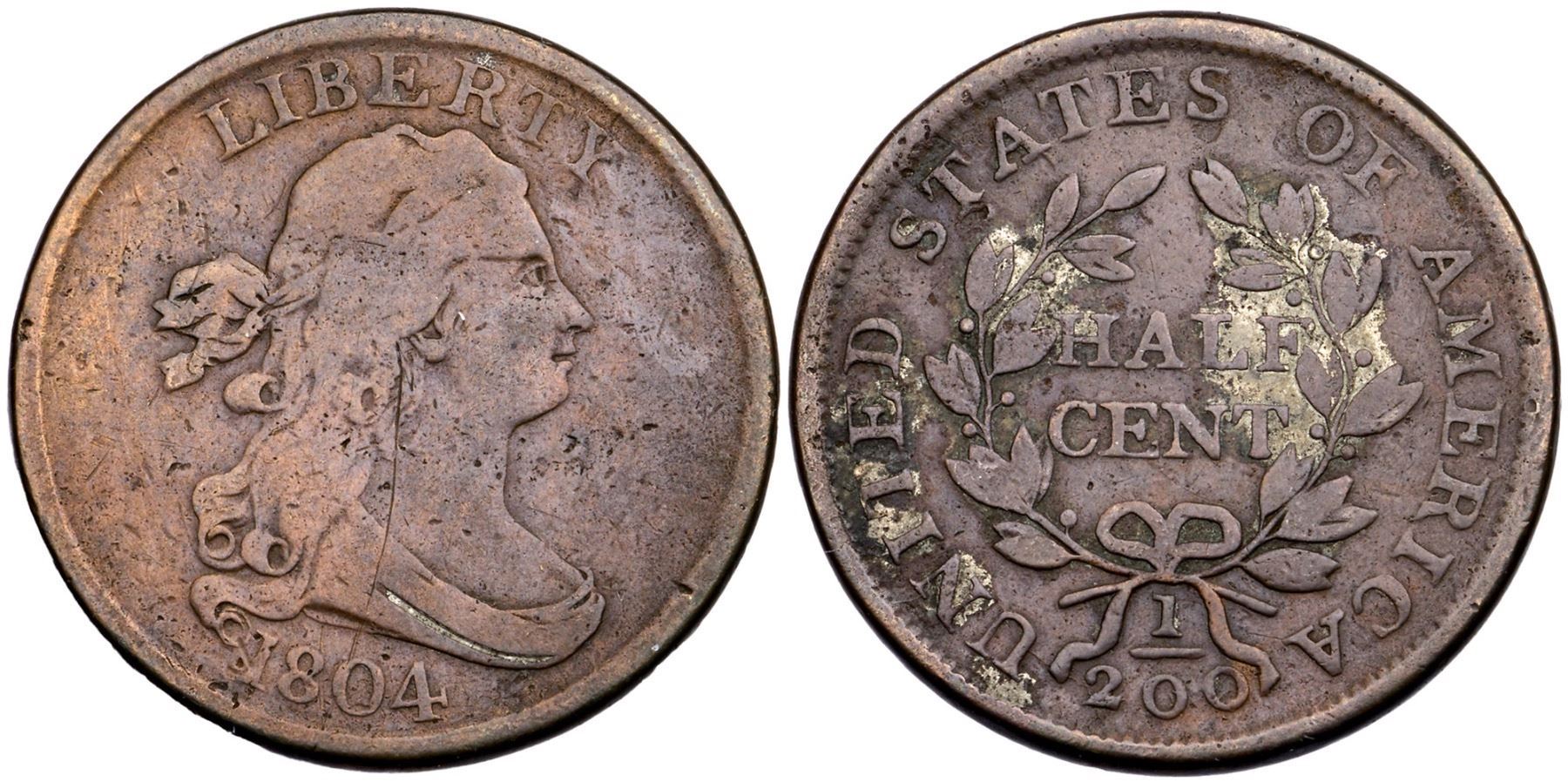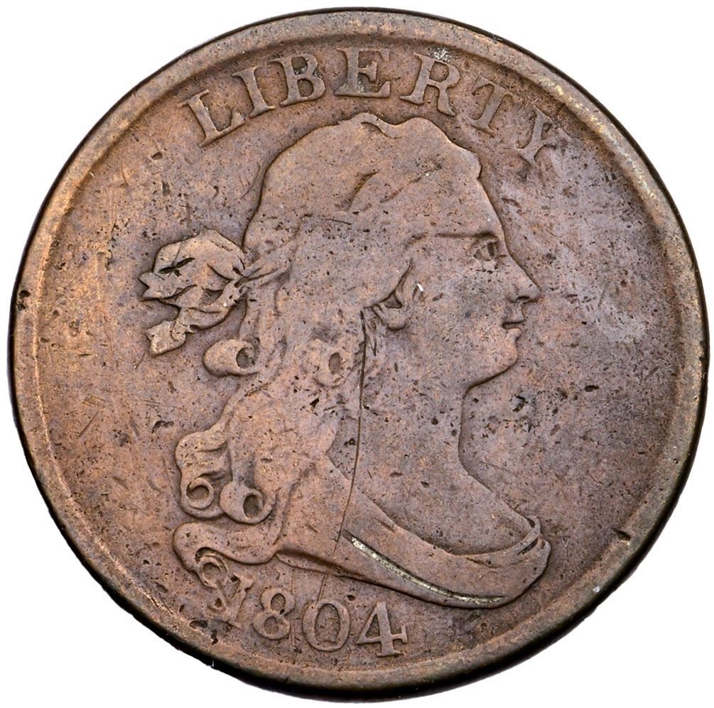 1804 C-4 R-4+ VG8A couple points sharper but there is some old silvery buildup, possibly lacquer, around some of the reverse devices and the obverse drapery. This was present in the Alvord plate of 1924, so it's been there for quite some time. The only notable mark is a thin, vertical scratch from the ear to the drapery. Chocolate brown. Manley state 3.0. 84.1 grains.Certificate Number: Pedigree: Ex; Ex F. R. Alvord (Plate Coin) 6/9/1924:114-Hillyer Ryder (annotated in catalogue) 5/1945-Wayte Raymond Mail Bid Sale 11/20/1945:26-?-Steve Fischer-FUN Sale 1/8/1987:62-Don Valenziano 4/2002 - Mike Packard 5/4/2012 EAC - Bob Kebler Collection