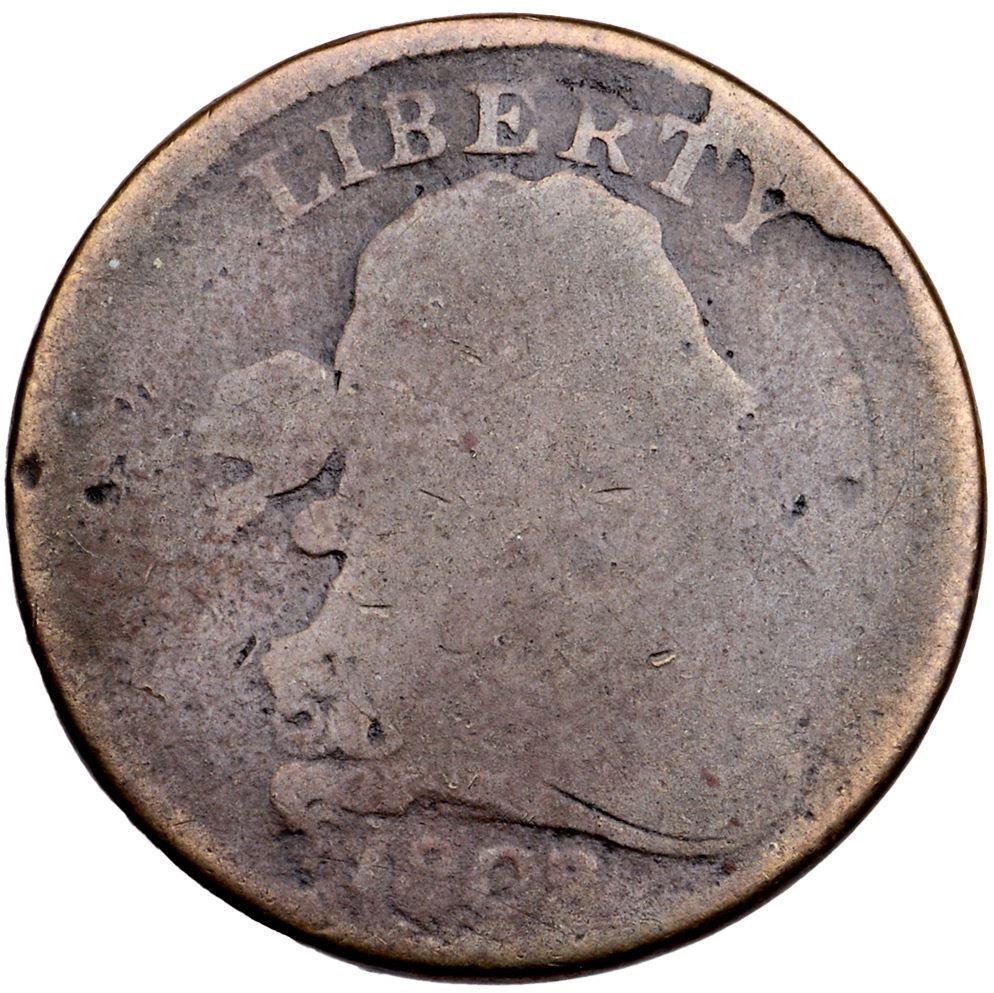 1808/7 C-2 R-3 FR2A couple points sharper but there is a strong dent and dull digs just right of the D in UNITED plus a few hairline scratches under HALF. Otherwise the planchet is smooth and void of notable marks, just very heavily worn. The date is weak but easily readable and about half of the legends are visible. Glossy chocolate and steel brown. Extremely rare M-LDS, Manley State 5.0. The areas above BE and RT are clearly sunken as retained cuds.Certificate Number: Pedigree: Ex Doug Durasoff, 2004 EAC Sale, McCawley & Grellman Auctions 4/17/2004:50 -R. Tettenhorst Davy Collection #08.2.16 Goldberg 9/4/11:352 - Bob Kebler Collection