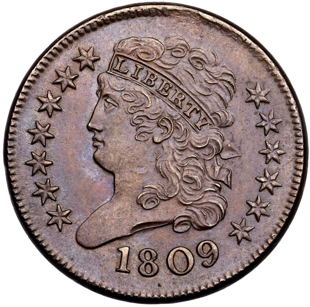 1809 C-3 R-1 MS62Beautiful light chocolate brown and pale blue tones on the obverse, the reverse is attractive light brown mellowed down from faded mint color with subtle blue tones. Free of notable marks. Brilliant frosty luster covers the surfaces, excellent eye appeal. Manley state 1.0. Broken out of a PCGS MS64BN holder with the Jon D. Lusk provenance noted (label included 1123.64/4808512).Certificate Number: Pedigree: Ex: Bill Luckett 1/1959-Bill Weber 9/1993-Jon Lusk, Heritage 5/9/24:3804 - CVM 5/17/2024 at EAC - Bob Kebler Collection
