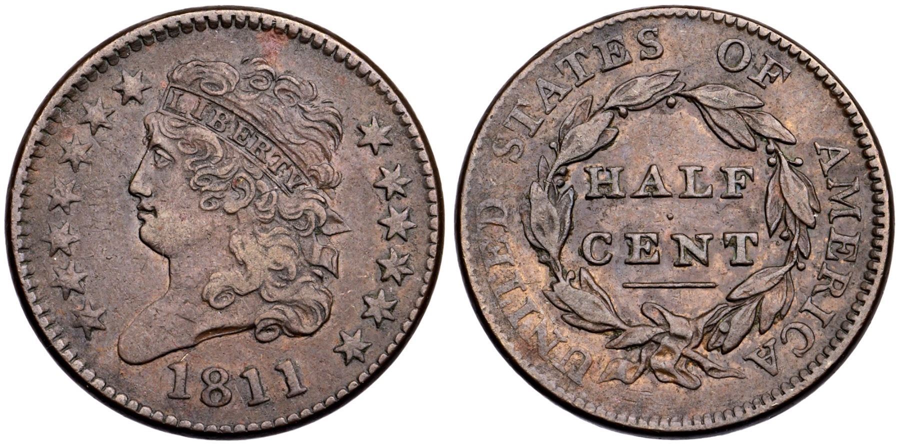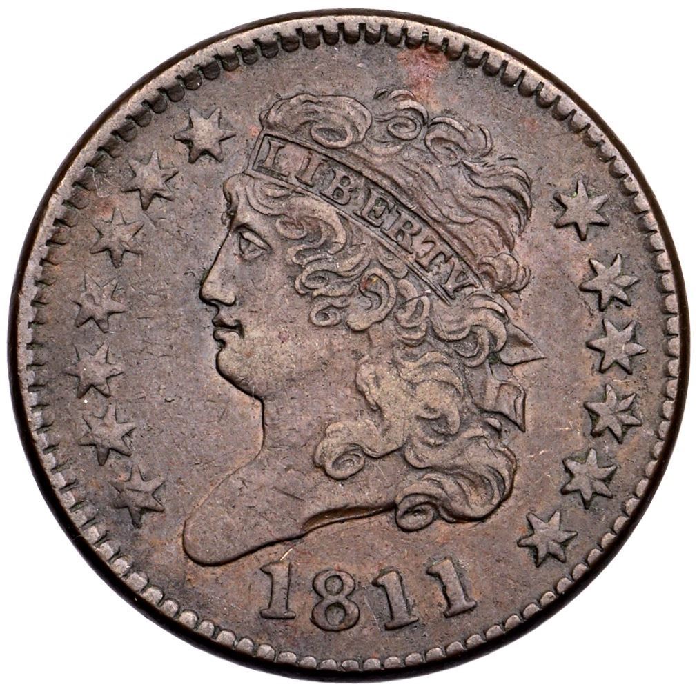 1811 C-2 R-3 VF205 points sharper but there are too many tiny contact marks scattered on both sides that prevent the higher grade. Glossy steel brown and chocolate with traces of lighter brown in protected areas on the reverse. No corrosion or verdigris. A bit softly struck on the left edge of the reverse, as usual, but otherwise well struck. Manley state 2.0. Removed from a NGC VF35 holder (1667641-010 label included).Certificate Number: Pedigree: Ex March Wells Heritage 8/2007:68 - Arnold & Harriet Collection - Goldberg 2/1/2009:486 - Bob Kebler Collection