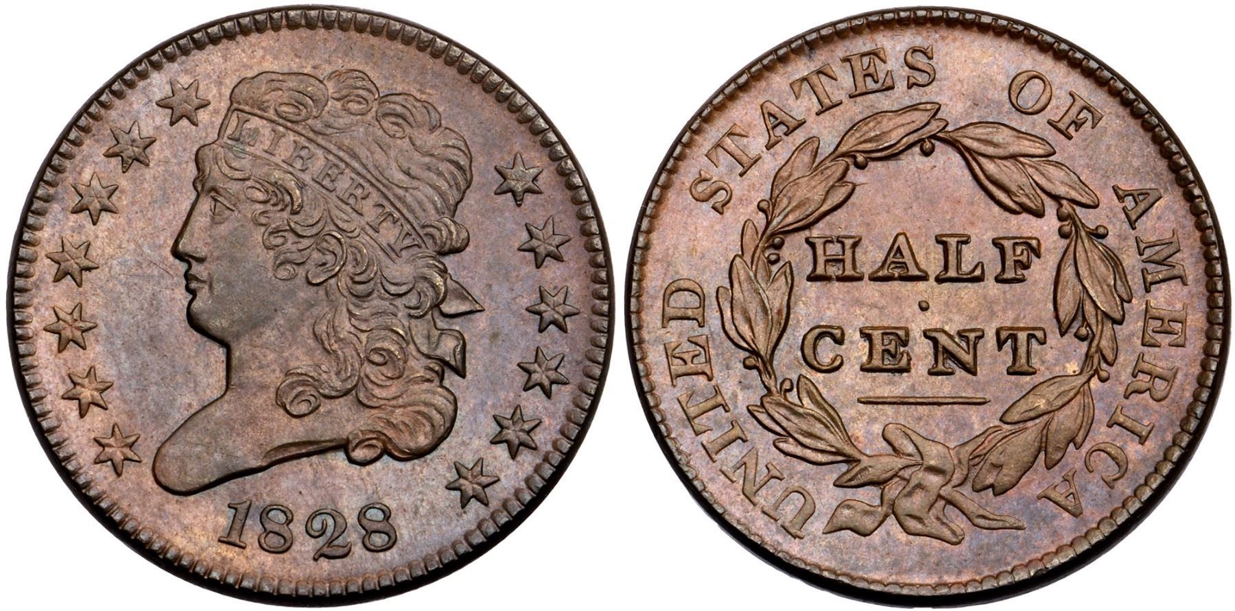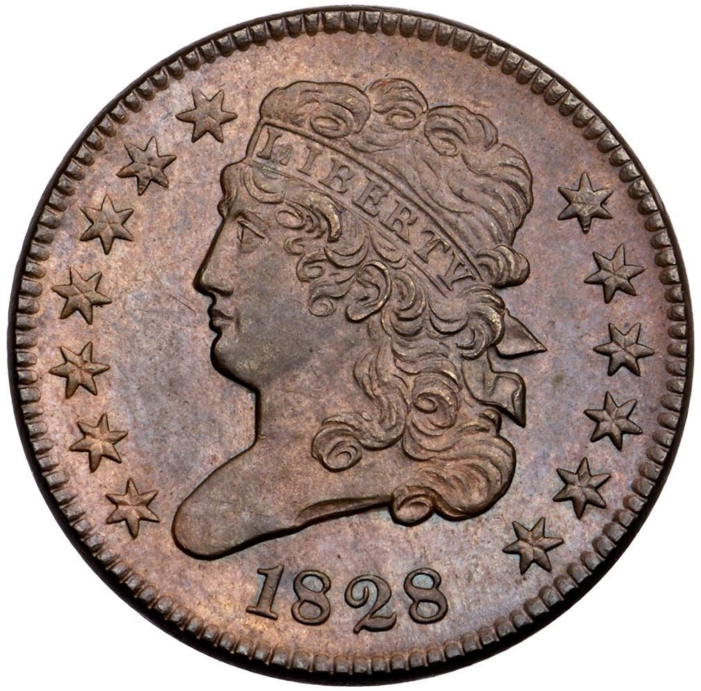 1828 C-3 R-1 MS62Choice golden brown and light steel brown's. No visible marks to the unaided eye, but under a glass a few trivial pin scratches are visible in the hair, on the cheek, and before the lips. Frosty, fully lustrous surfaces. LDS, Manley state 3.0.Certificate Number: Pedigree: Ex; Tom Reynolds 6/11/2003 - Bob Kebler Collection
