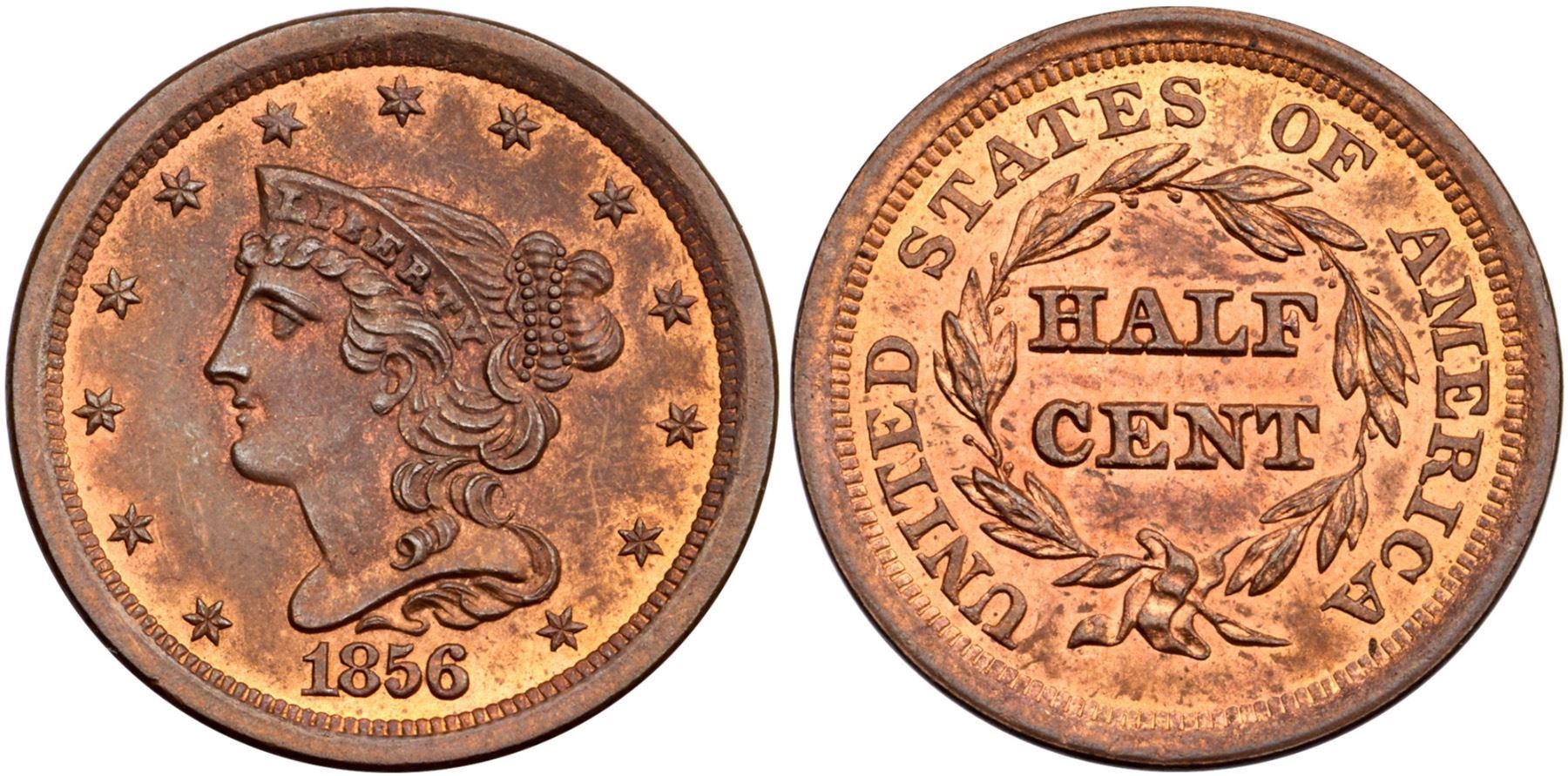 1856 C-1 R-2 MS63Bluish steel and faded mint red with 40% of the original mint red remaining on the obverse, the reverse has about 80%. There is a tiny speck of carbon at the dentils over the second A in AMERICA, free of notable marks or detraction otherwise. MDS, Manley state 2.0. Removed from a PCGS MS64RB holder (1237.64/21513151 label included).Certificate Number: Pedigree: Ex; Bowers & Merena 12/2/2004:129 - CVM - Bob Kebler Collection