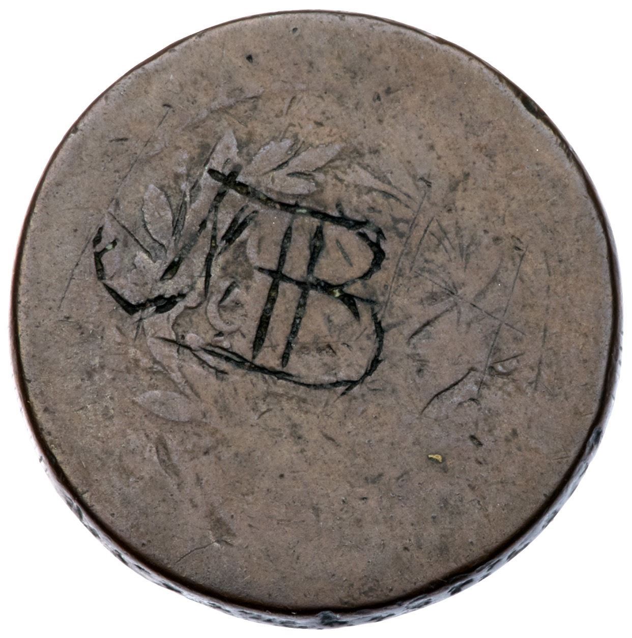 1793 S-9 R-2 Wreath Cent G4 but EngravedGlossy light brown and chocolate with smooth surfaces, but there are intentional scratches on both sides. The notable scratches are a large MA behind the head, a star on the portrait, and JB in the center of the reverse. Perhaps a crude love token. The upper half of the date is visible as is mist of LIBERTY, but less than half of the devices on the reverse are visible. LDS.Certificate Number: Pedigree: From the Fred H. Borcherdt Collection