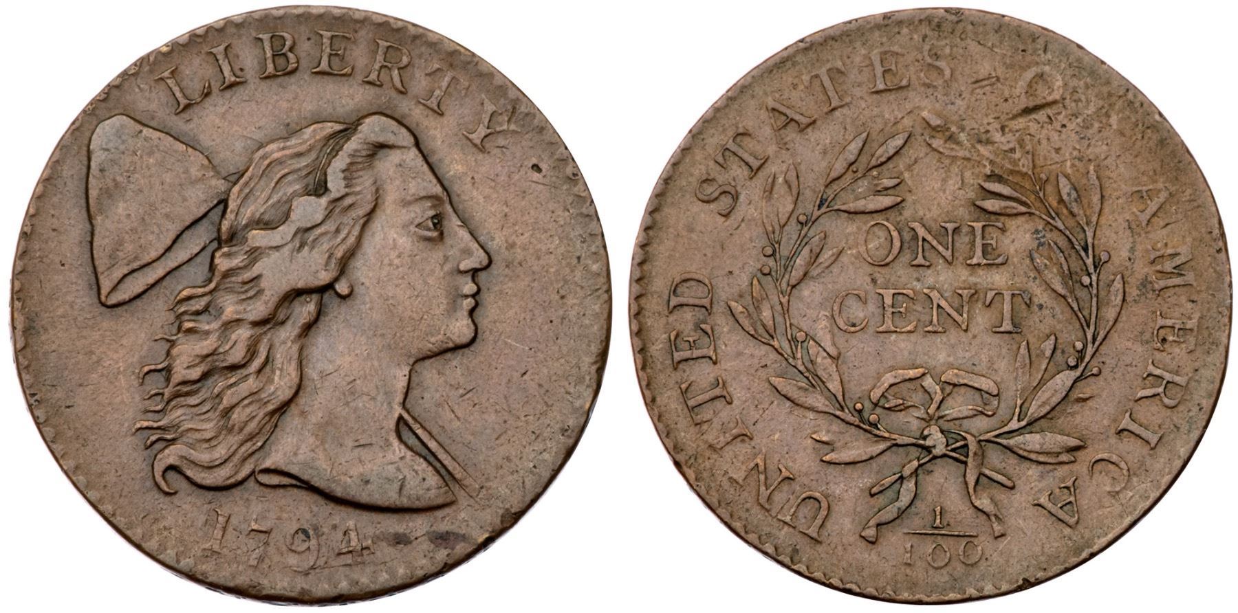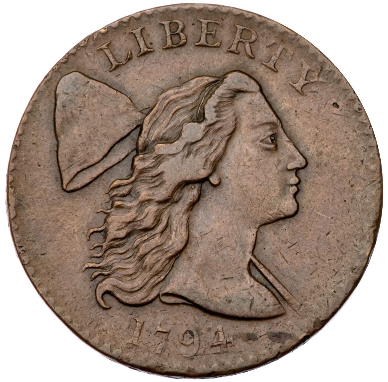 1794 S-22 R-1 VF25Very attractive glossy light to medium brown with smooth surfaces and just a few small contact marks. The notable marks are a tiny rim bruise off the lower end of the cap and a dull nick under the O in OF. Mint frost shows in protected areas and this cent has very nice eye appeal. MDS, Breen state V, with "Mounds" on the reverse and fine die clashmarks on both sides.Certificate Number: Pedigree: Ex Denis W. Loring 1978-Fred H. Borcherdt Collection
