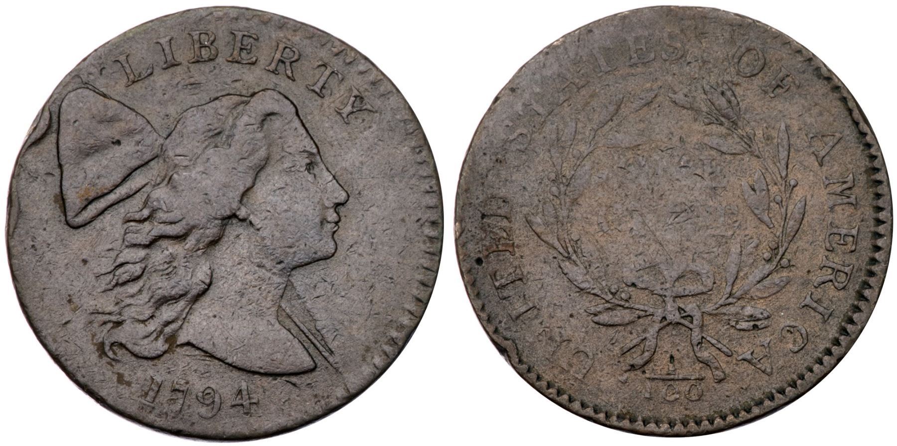 1794 S-23 R-4+ VG10Five points sharper but there are two rim bumps left of the cap and numerous microscopic ticks scattered over both sides. Glossy steel brown and light chocolate with lighter brown in protected areas. Void of any trace of corrosion or verdigris. LDS, Breen state V, with die cracks on the obverse and swelling in the center of the reverse. Graded F15 net VG8 by Noyes, his photo #25714.Certificate Number: Pedigree: Ex Del N. Bland-Dr. C. R. Chambers, Jr.-Jack H. Robinson-Fred H. Borcherdt Collection