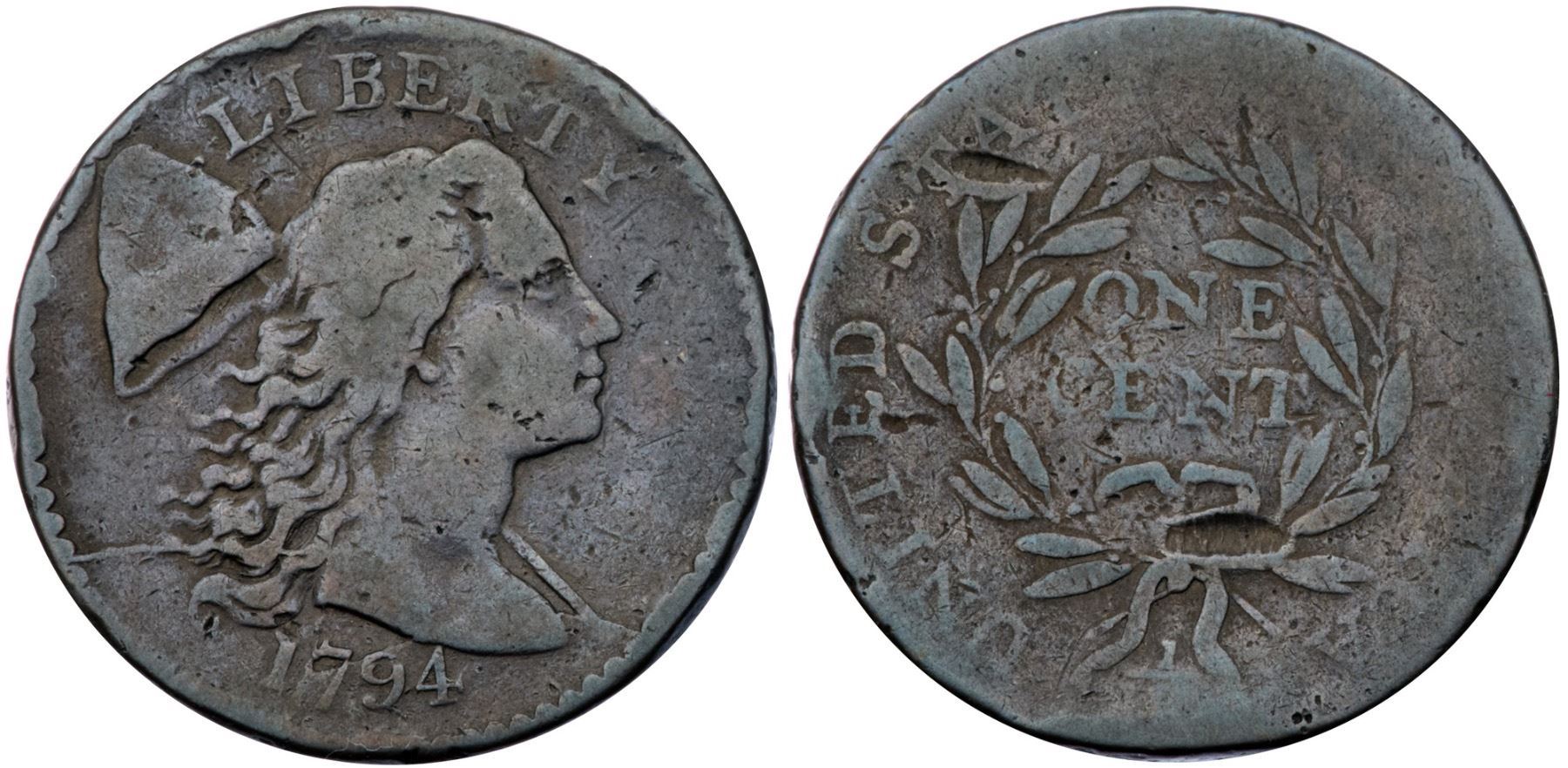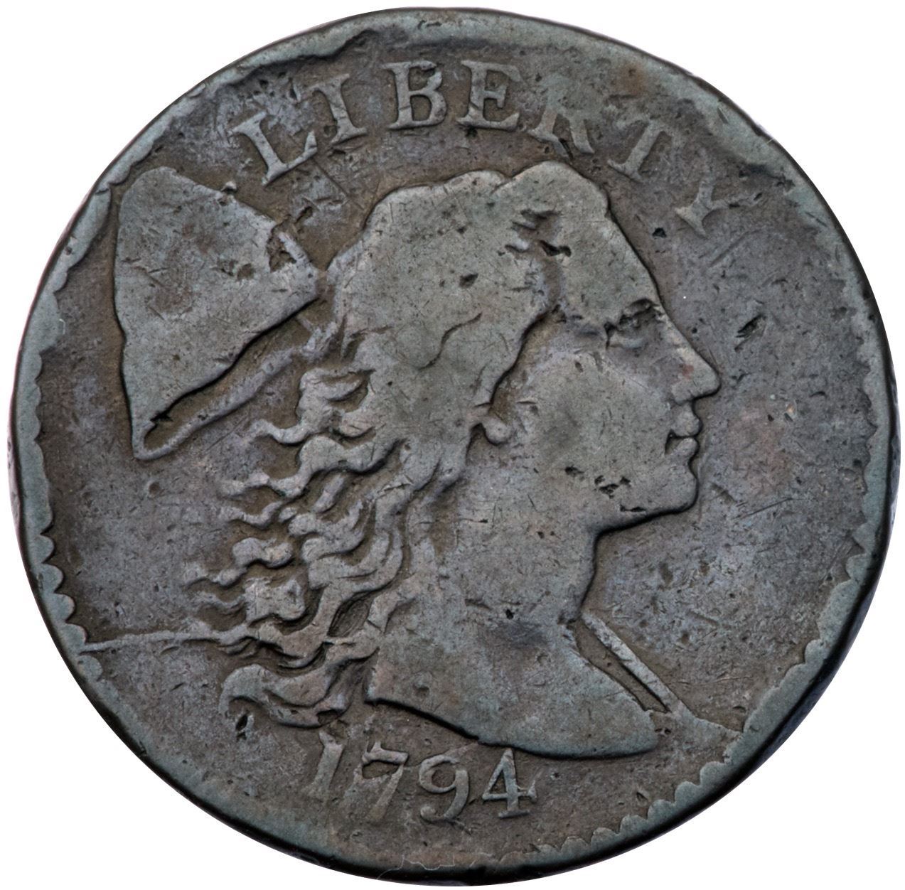 1794 S-51 R-4 G5A few points sharper but there some obvious contact marks on otherwise smooth surfaces. The notable marks are several light to moderate rim bruises on both sides and two dull large nicks or dents on the reverse. Glossy steel brown with chocolate in the fields and protected areas. Very rare LDS, Breen state IV late, Heck state 6, with die cracks at the bottom of the obverse and a slightly raised retained cud break involving 794, the bust tip, and the end of the pole. Graded VG8 net G5 by Noyes, his photo #27171.Certificate Number: Pedigree: From the Fred H. Borcherdt Collection