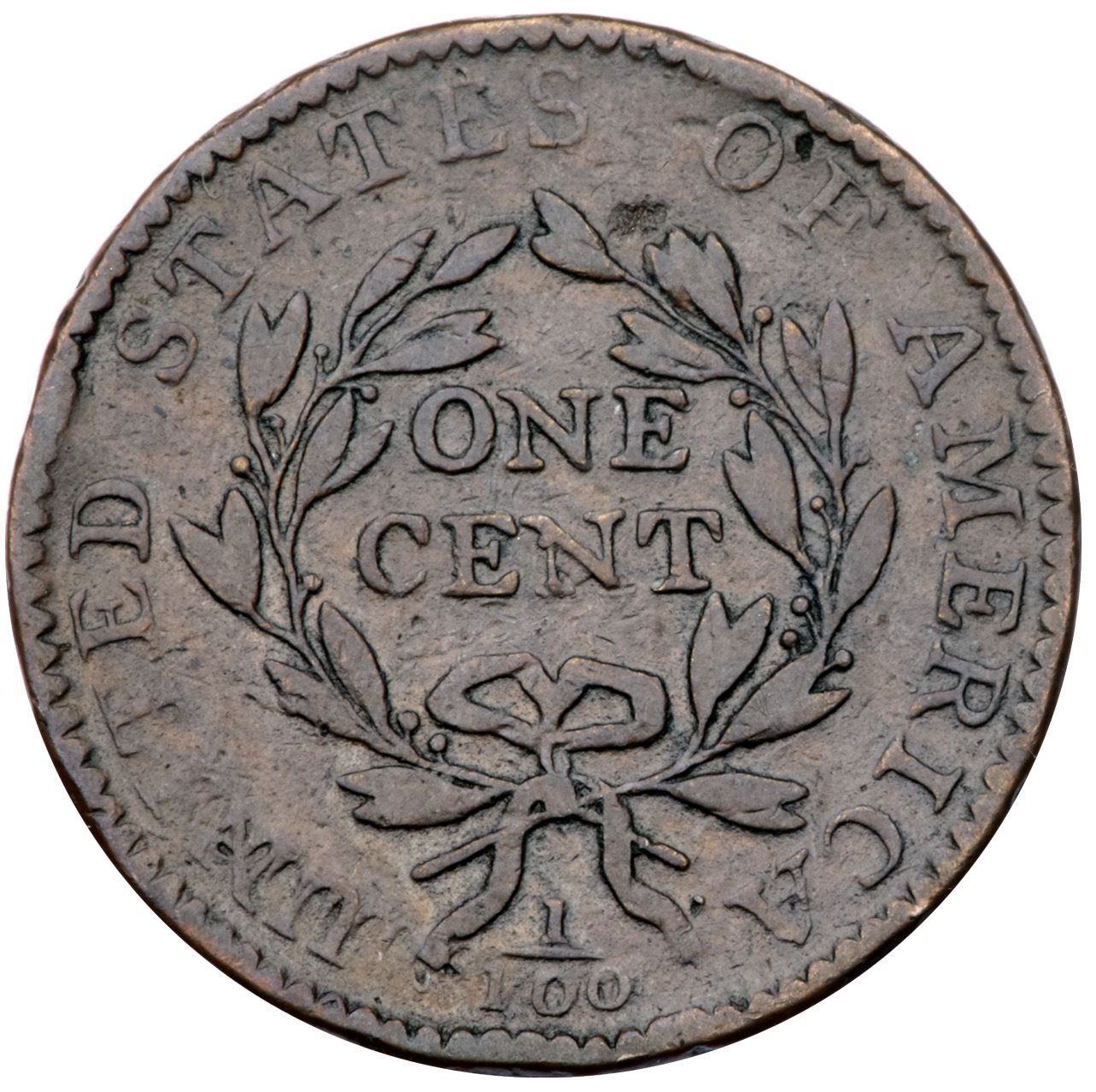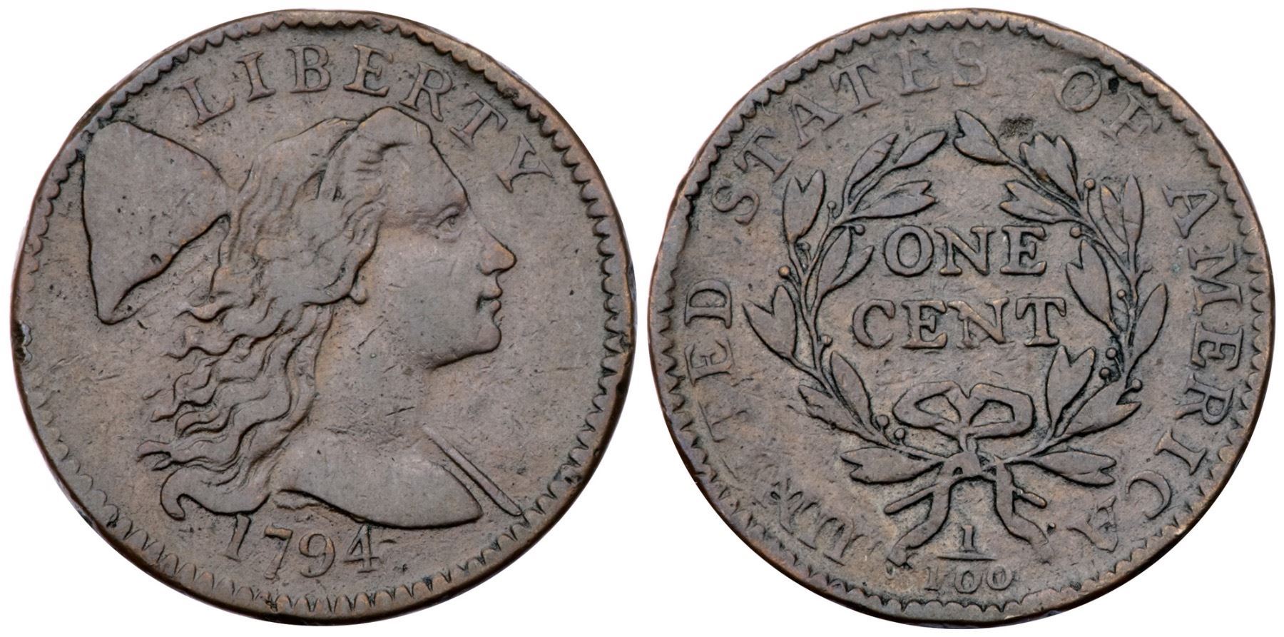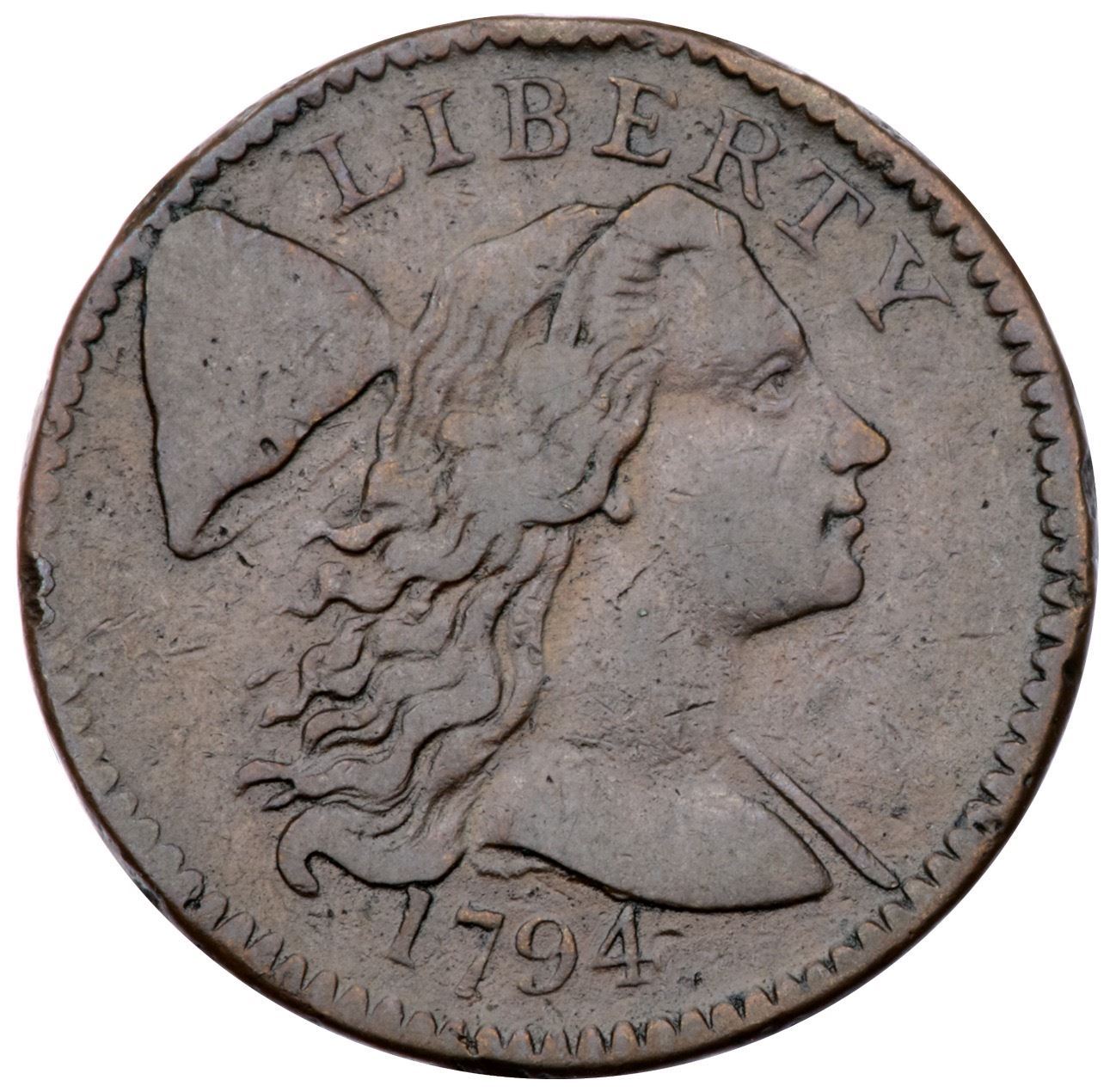1794 S-61 R-4 F15At least 5 points sharper but there are a few light rim bumps on both sides, the strongest ones at BE in LIBERTY and D-S on the reverse. Otherwise just minor marks including a planchet flake at the leaf tip under the O in OF. Glossy light to medium brown with light chocolate in protected areas. E-MDS, Breen state II, with die clashmarks on the reverse. Graded VF25 net F15 and tied for CC#18 in the Noyes census, his photo #25712.Certificate Number: Pedigree: Ex Denis W. Loring 6/1979-Fred H. Borcherdt Collection