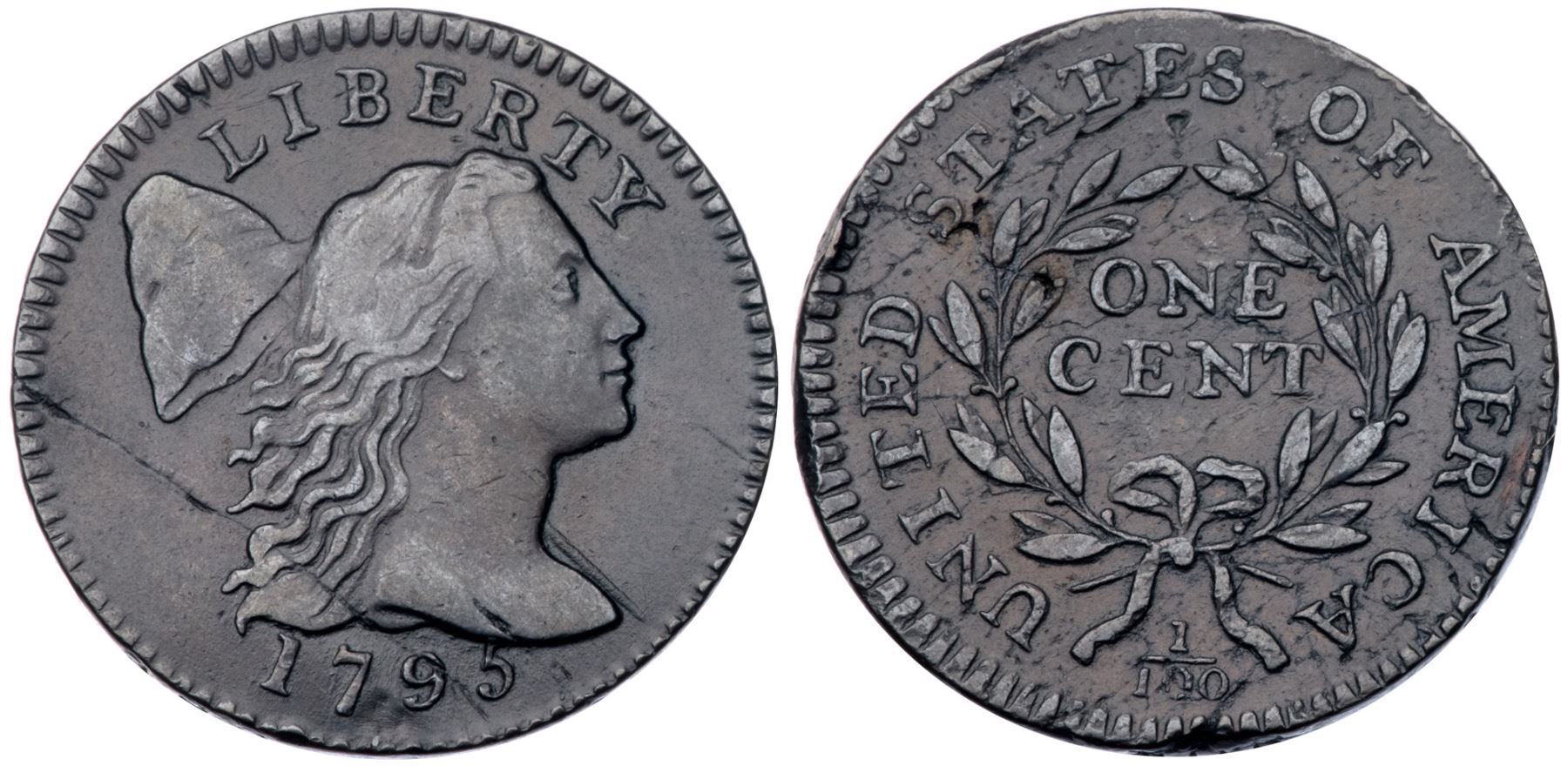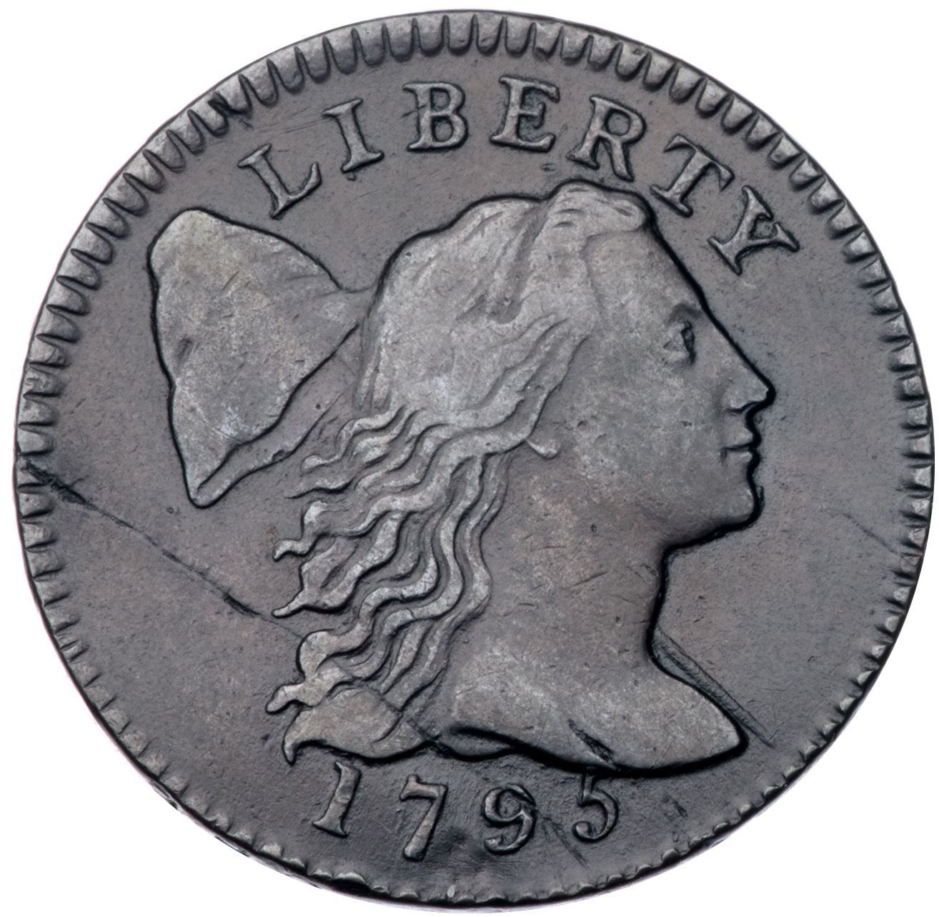 1795 S-75 R-3 Lettered Edge F15Ten points sharper with several planchet fissures on both sides (as struck) plus a few contact marks on the reverse. The most significant of the planchet flaws is a thin diagonal fissure in the field below the dap, another web of fine fissures at STATES, and a few more around the fraction. The notable marks contact are an abraded depression between the feet of the 7 & 9, a small rim bruise at D-S, and a small dent under the E in STATES. Glossy dark olive brown and steel. EDS, Breen state I, before any cracks or clashmarks on the reverse. The date and legends are bold.Certificate Number: Pedigree: Ex Denis W. Loring 1/1981-Fred H. Borcherdt Collection