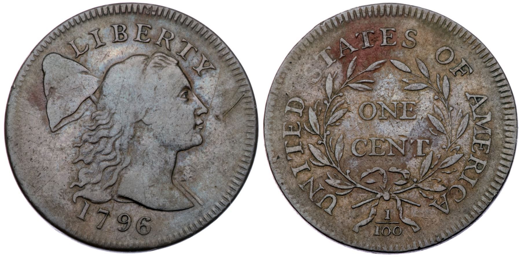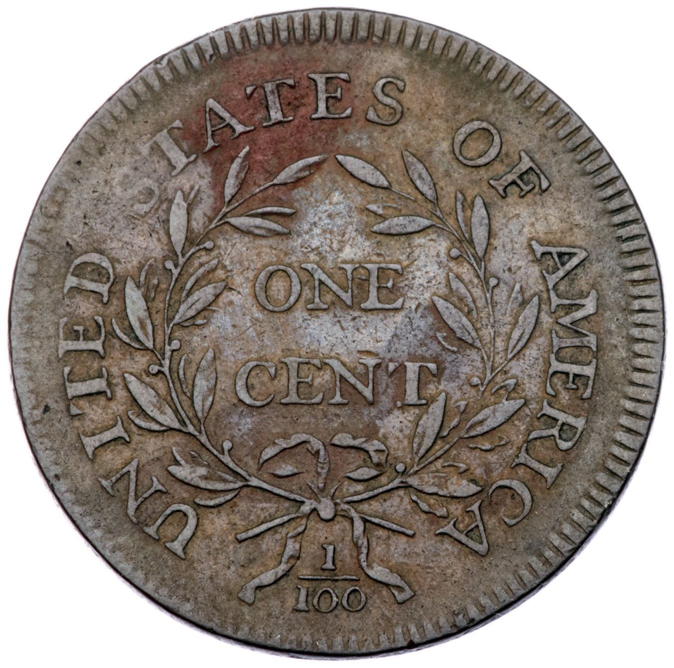1796 S-86 R-5 Liberty Cap F12+Sharpness VF25 but there are fine hairline scratches on the obverse two stronger ones in the field before the face. The surfaces are smooth except for a small patch of very fine reddish roughness at the left edge of the cap and another at ATE. The toning is a very attractive glossy medium brown and light chocolate with the exception of those two reddish brown patches. Overall the eye appeal of this cent is quite nice. EDS, Breen state I, before any crumbling on the profile. Graded VF25 net F12 and tied for CC#9 in the Noyes census, his photo #26245.Certificate Number: Pedigree: Ex Robert Le Blanc (Le Blanc Numismatics)-Denis W. Loring 6/1982-Fred H. Borcherdt Collection