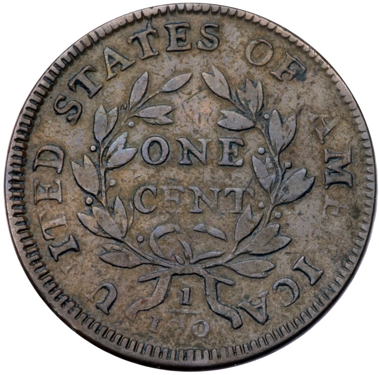 1796 S-114 R-5- Draped Bust F15Ten points sharper with several small splashes of reddish brown on the obverse, and a few of those splashes contain traces of microscopic roughness and verdigris. The remainder of the planchet is smooth and the toning is an attractive glossy light olive brown. The only notable sign of contact is a dull but relatively strong nick in the dentils before the nose. EDS, Breen state I, with an uncracked obverse. Called VF20 net VG10 and tied for CC#14 in the Noyes census, his photo #28909.Certificate Number: Pedigree: Ex French's Numismatic Auctioneers (Troy, NY), lot 85 (sale date uncertain)-Fred H. Borcherdt Collection (includes the French's lot envelope)