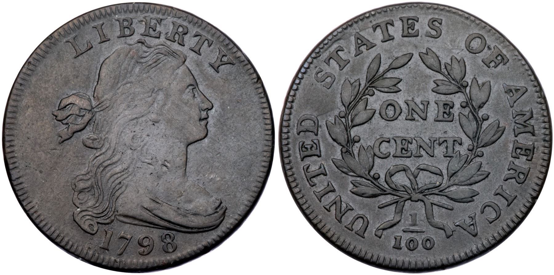 1798 S-161 R2 Small 8, Style I Hair VF20Attractive glossy light olive brown and chocolate. Smooth with light to moderate wear and only trivial contact marks. A small rim nick right of the Y may help identify this cent. E-MDS, Breen state IV, with minor swelling and die cracks on the reverse. A nice cent for the grade, nearly choice.Certificate Number: Pedigree: From the Fred H. Borcherdt Collection