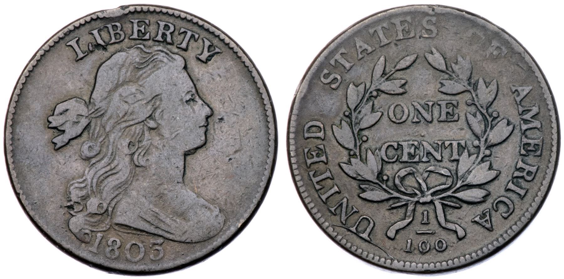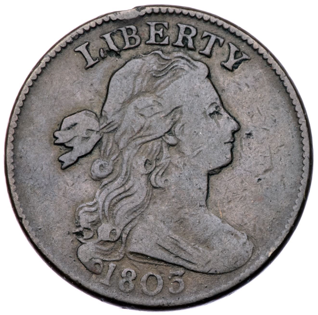 1803 S-247 R-3 VG10Slightly sharper but there are a few contact marks including a small rim bruise over the B and a dull nick under the adjacent I in LIBERTY. Glossy light olive brown and chocolate with smooth surfaces and nice eye appeal for the grade. Extremely rare TDS, Breen state III, with a die crack at UNITE, and the crack over the U is strong. Graded F12 net VG10 and tied for finest of only three known in this die state, his photo #26128. This is the discovery coin for the die state as mentioned in the Breen encyclopedia for state III.Certificate Number: Pedigree: Ex Dean Johnson 6/1977-Fred H. Borcherdt Collection